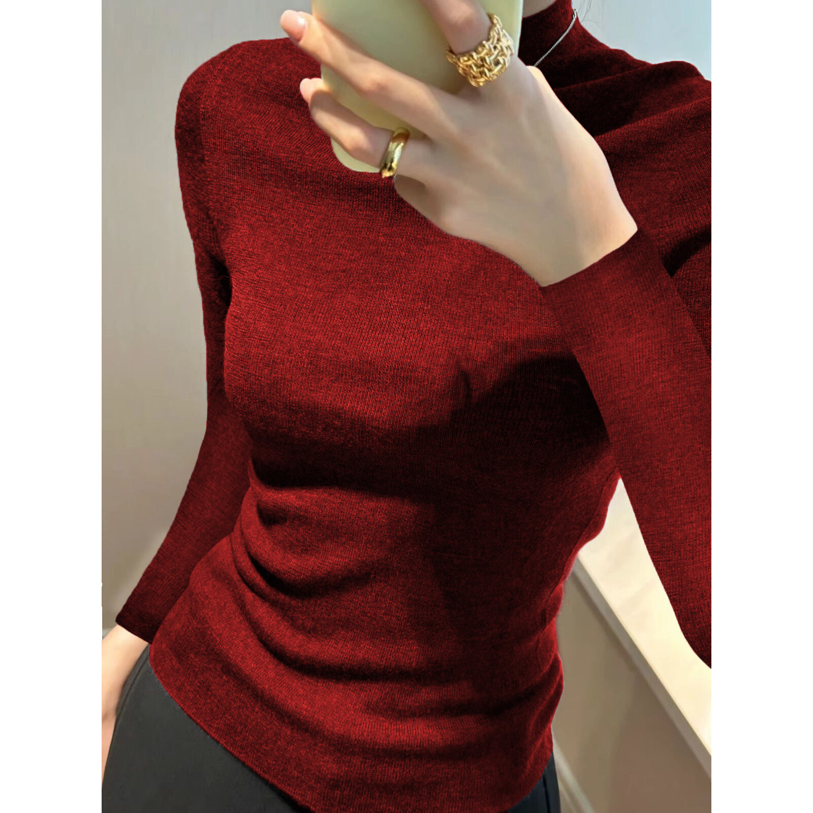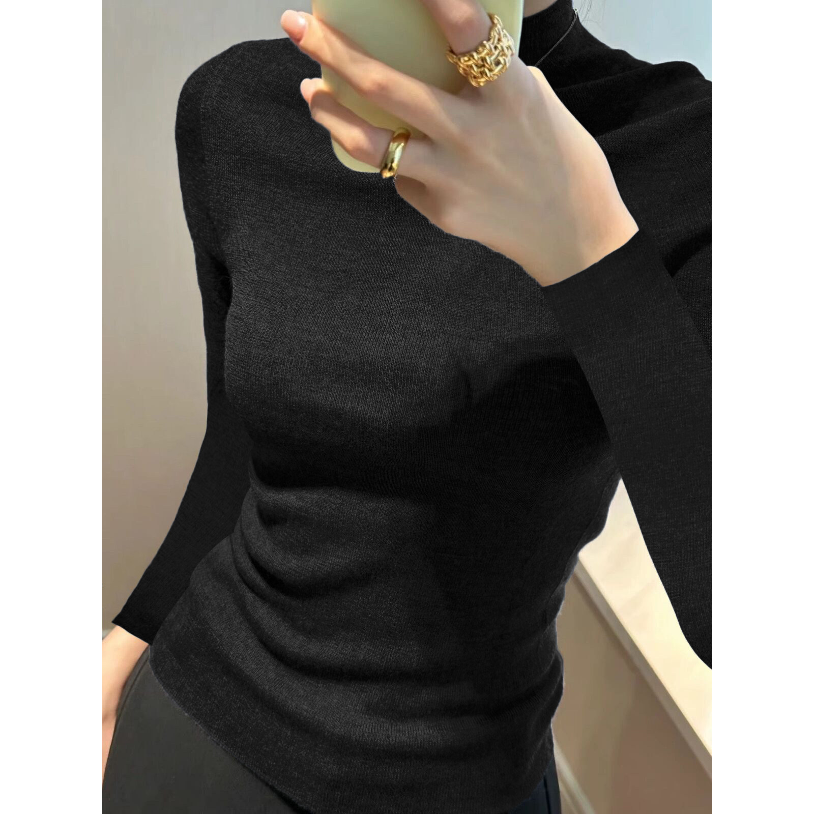 半高领高级感深灰色打底衫女2025秋冬新款软糯针织衫紧身内搭毛衣