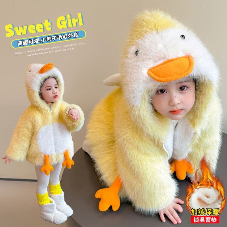 女童皮草毛毛衣2025新款冬款可爱洋气加绒外套儿童女冬装加厚棉衣