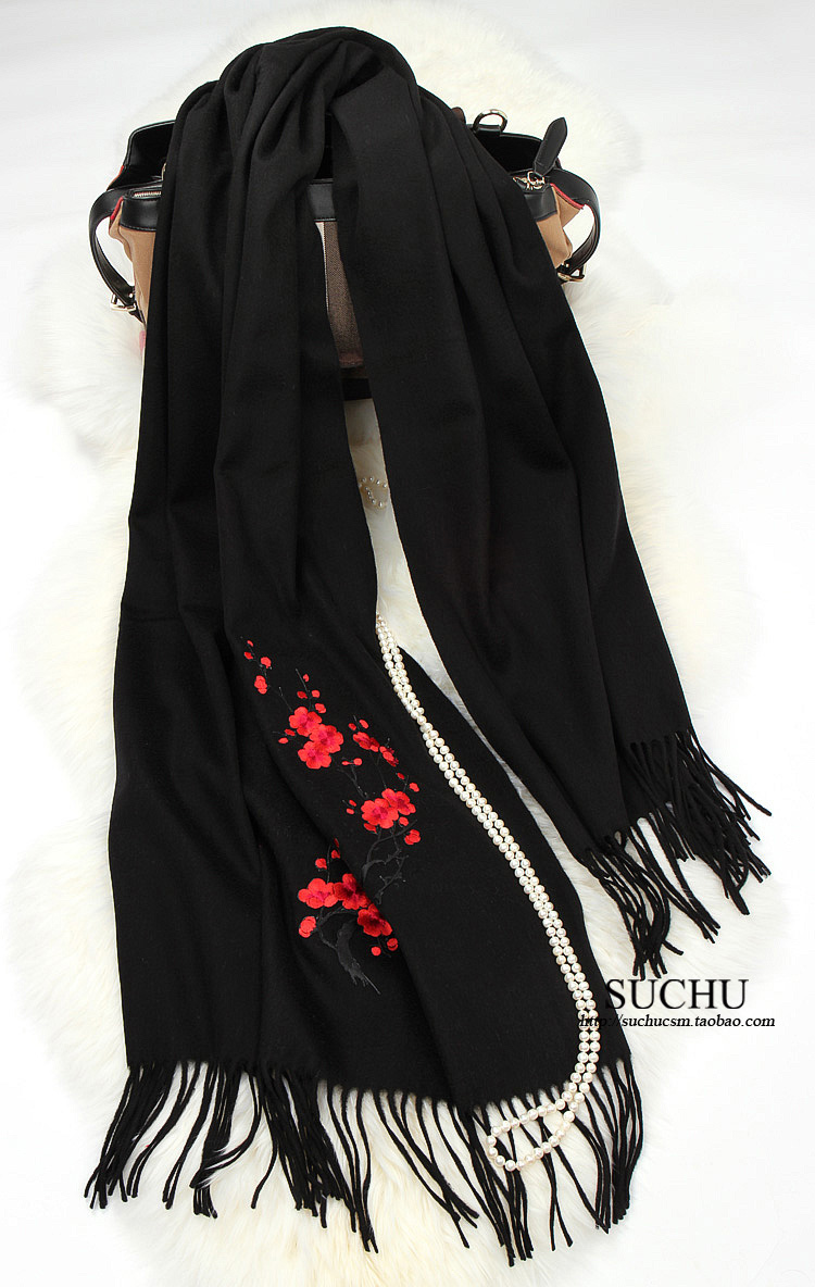 sc素雏精美刺绣围巾女