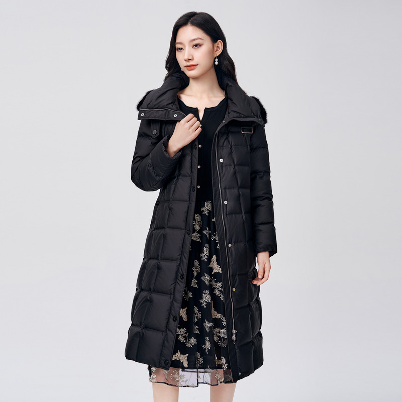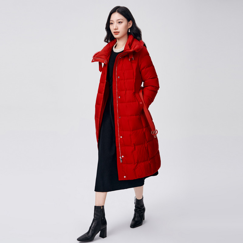 【关注领券】BuouBuou商场同款法式连帽收腰白鸭绒羽绒服外套女