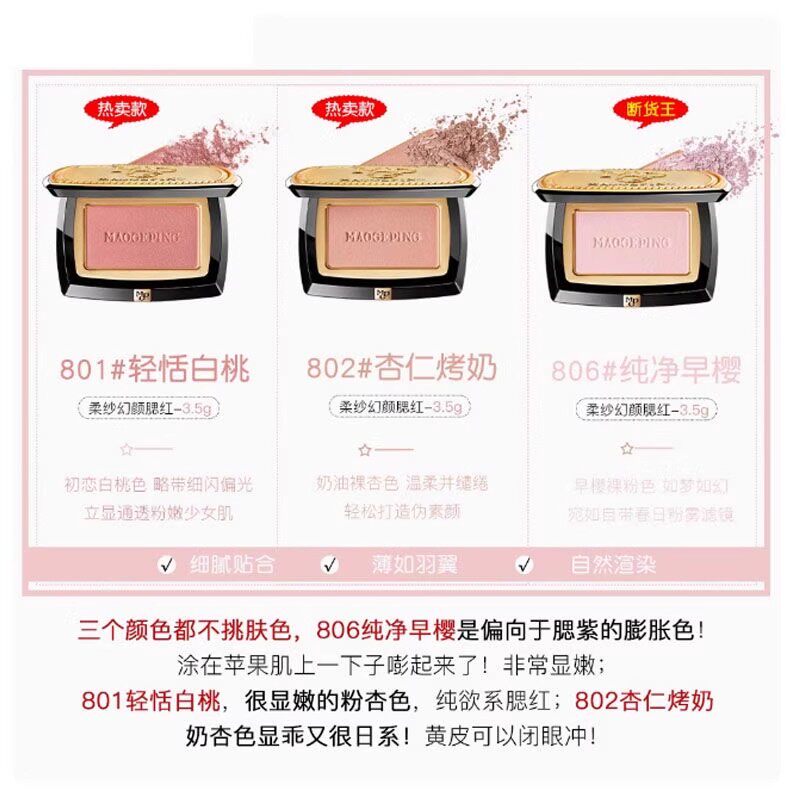 MAOGEPING/毛戈平柔纱幻颜腮红胭脂盘806膨胀色收缩色修容R