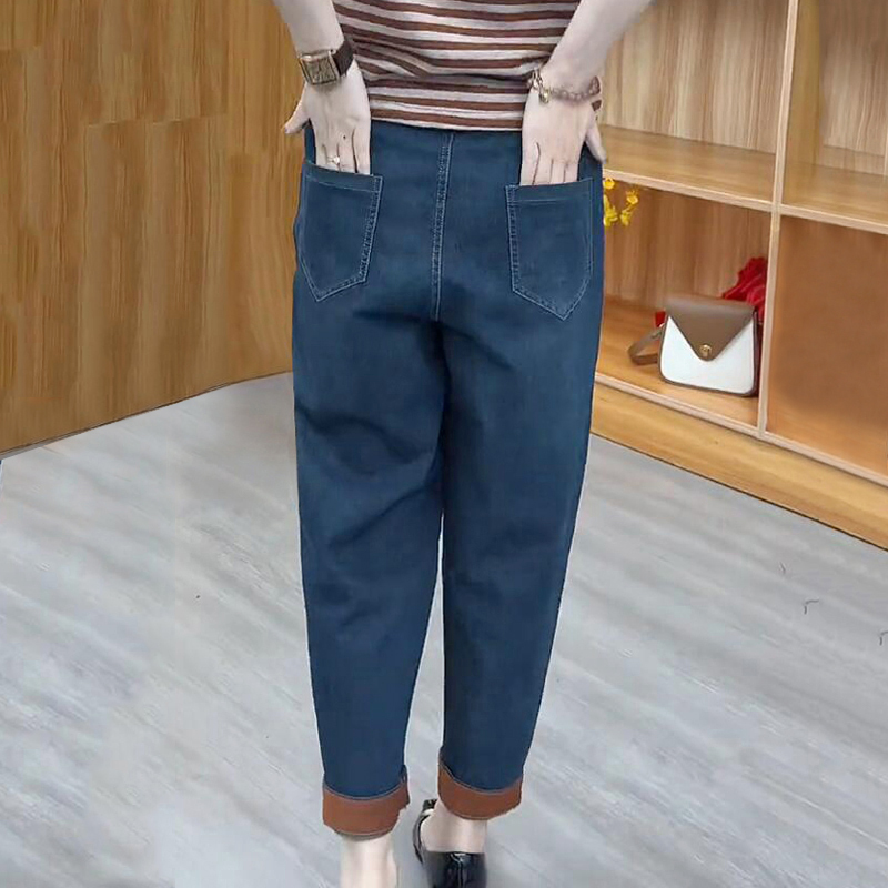 时尚新款牛仔裤女士秋冬休闲哈伦九分裤加绒中年妈妈裤子松紧女裤