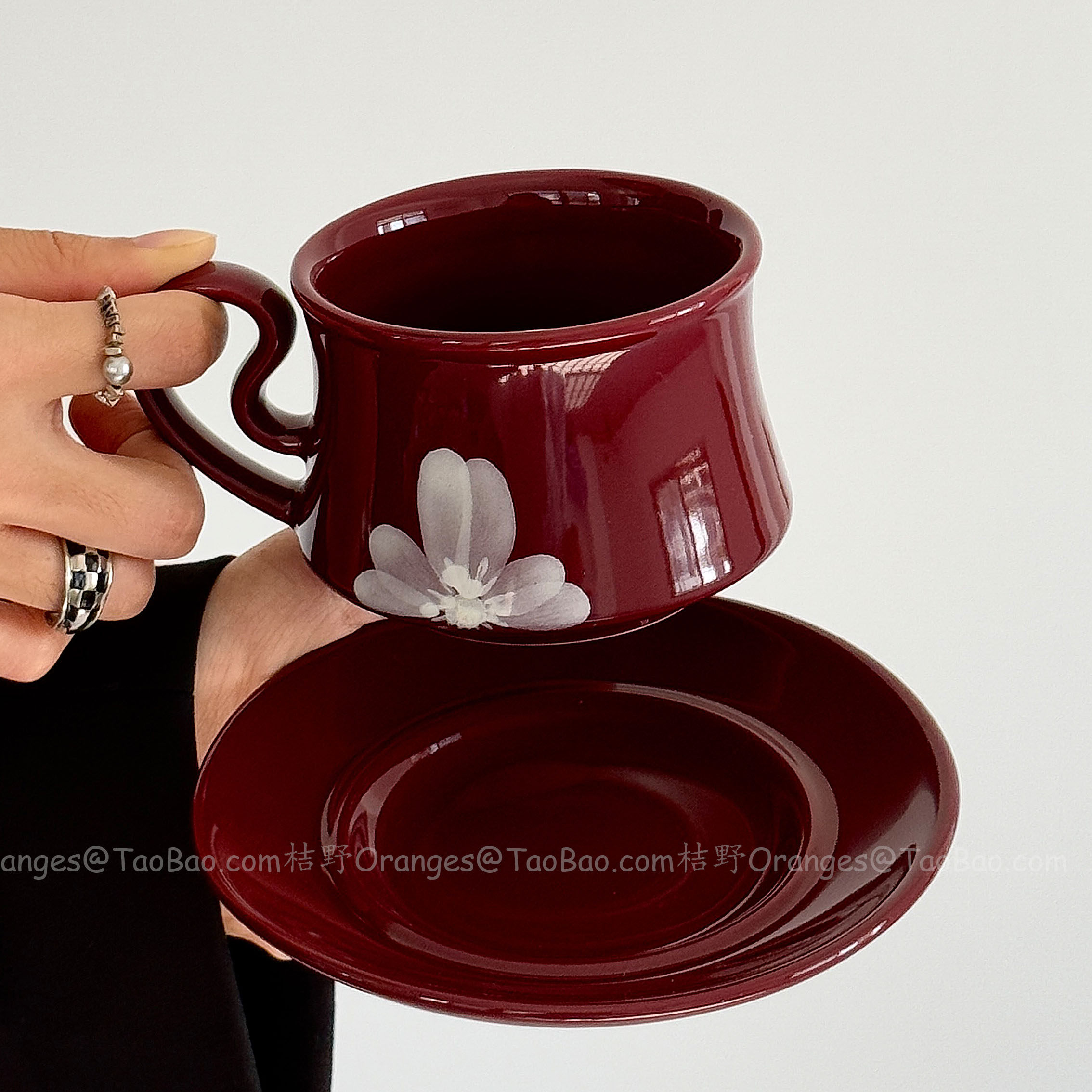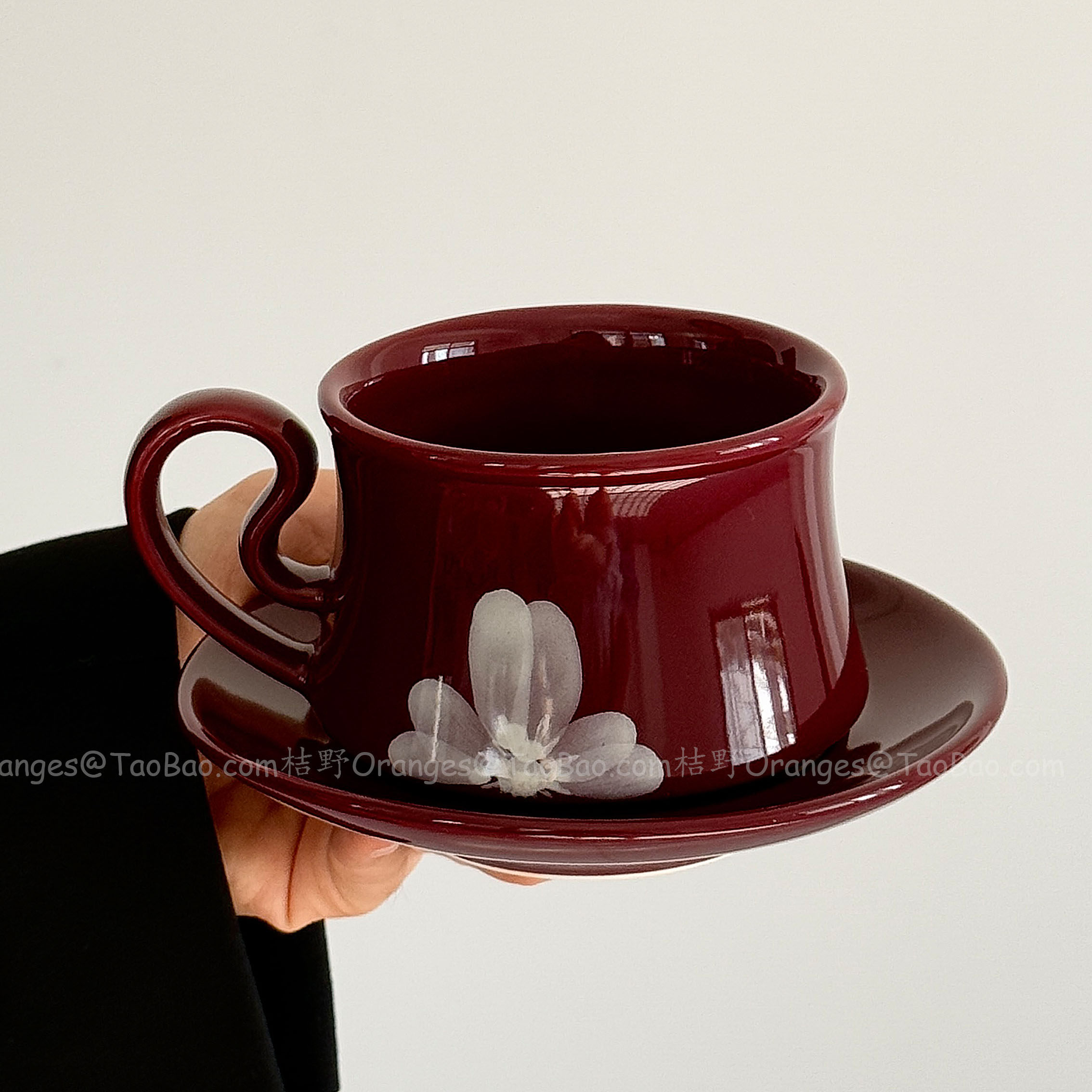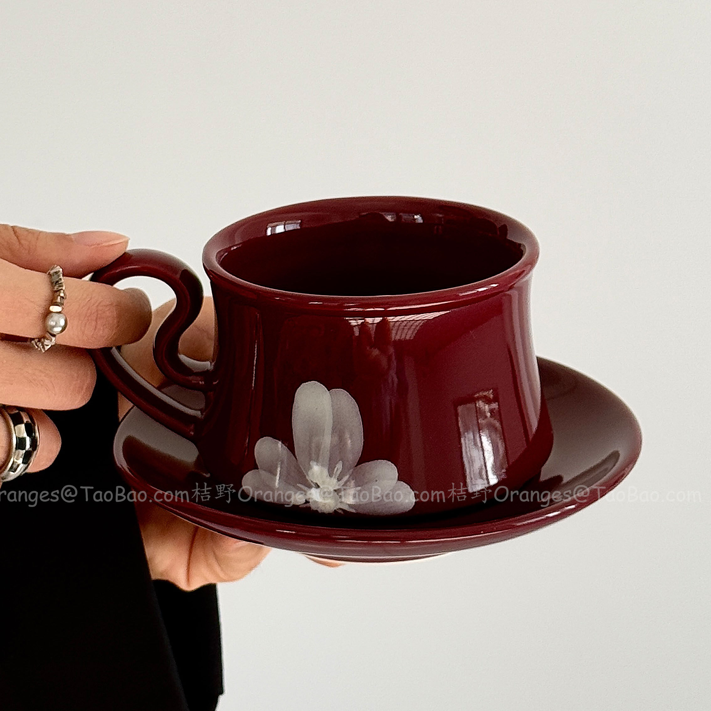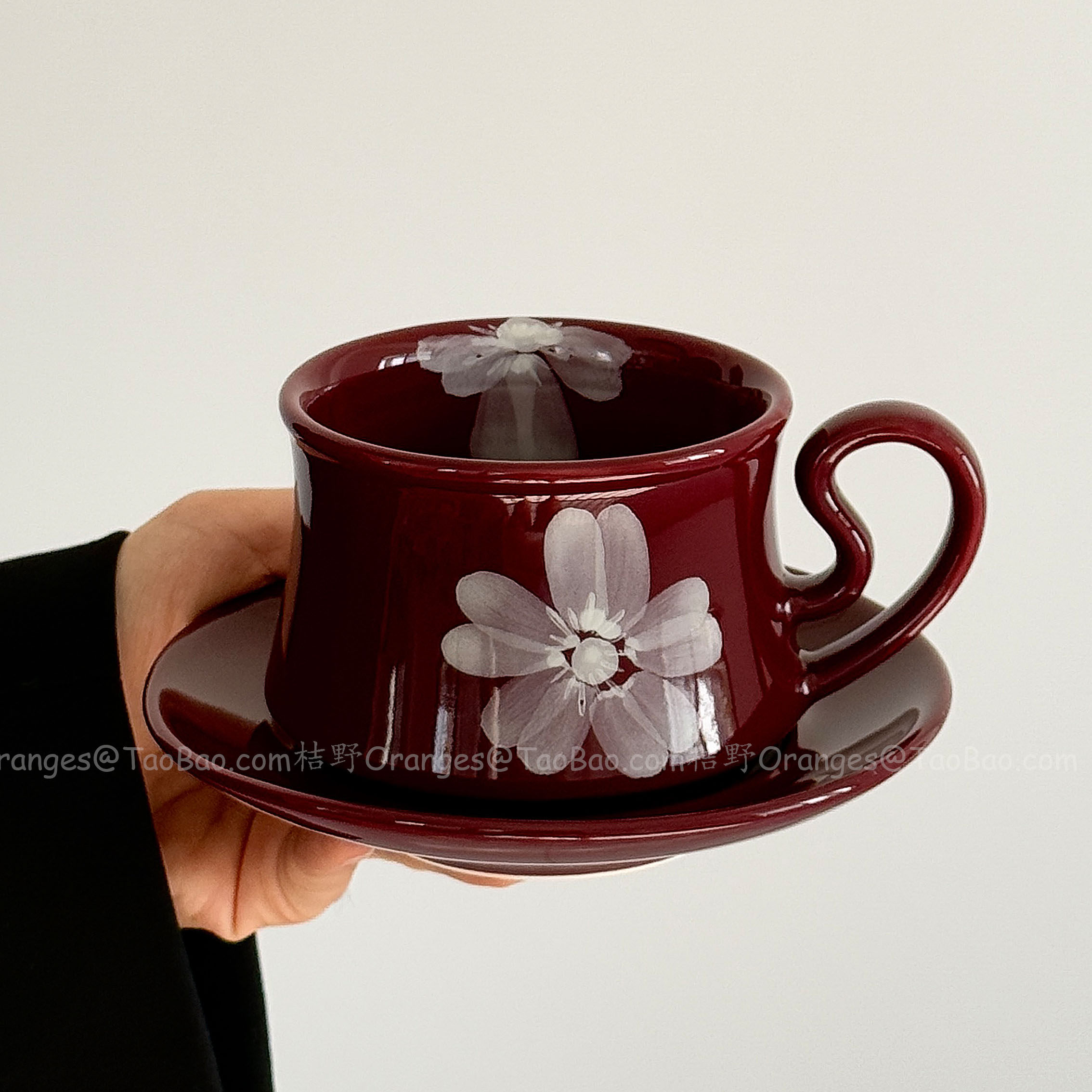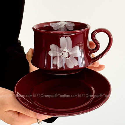 Oranges中古风手绘雾花咖啡杯碟复古红拿铁杯下午茶水杯小众礼物