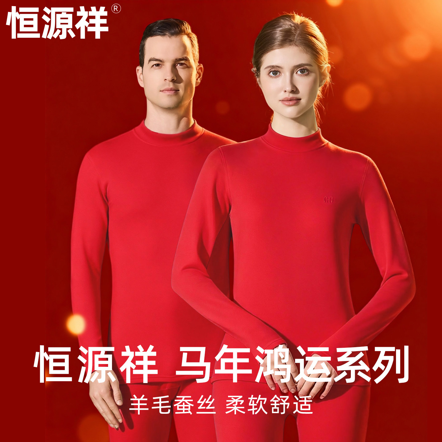 恒源祥本命年女内衣套装保暖秋衣秋裤2026马年结婚大红色半高领男