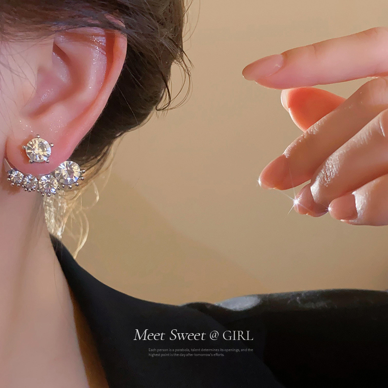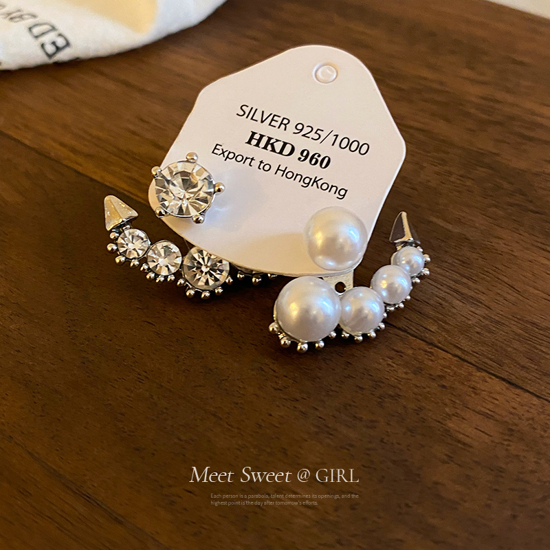 银色不对称闪钻珍珠耳钉2025年新款爆款独特耳环轻奢高级感耳饰女