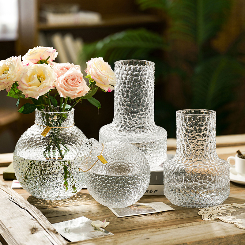 速发风极冻冰川轻奢玻璃花瓶透明水培插花客厅装饰高级感摆件