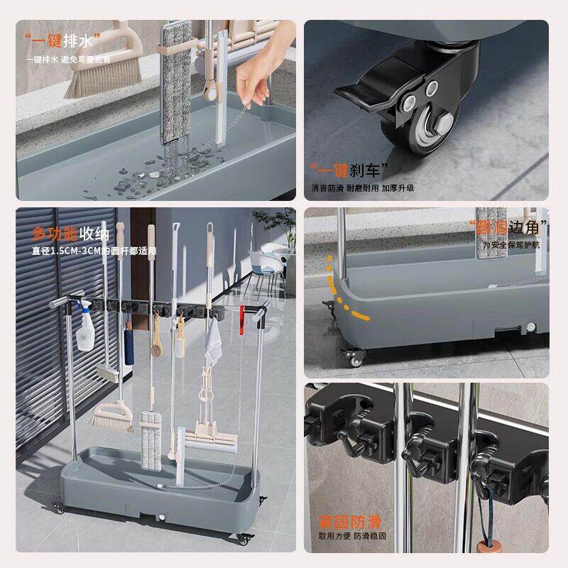 移动拖把架落地式不锈钢放扫把拖布置物户外清洁工具收纳沥水架子