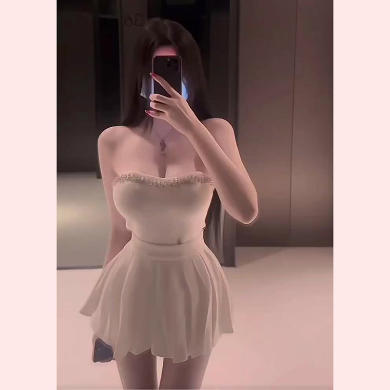 【TiTi美少女】纯欲辣妹美背性感抹胸内衣女秋季小背心百褶裙套装
