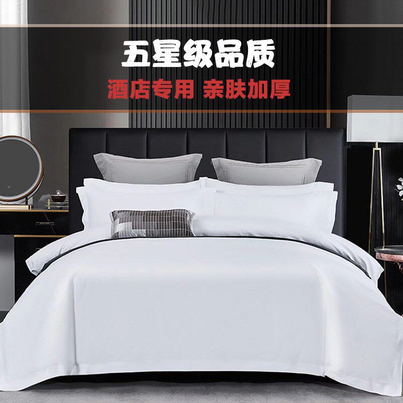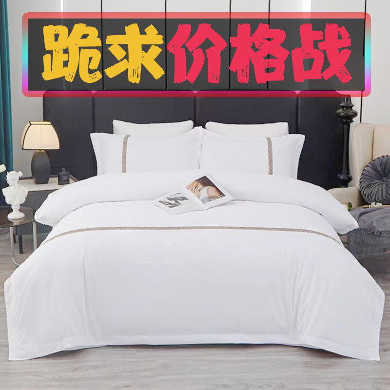 酒店布草床单四件学生全纯白色被套棉旅社宾馆民宿床上用品三薇妍