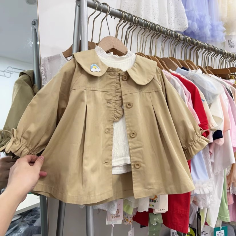 女童风衣外套春秋款洋气女宝宝设计感娃娃领纯棉长袖秋季儿童开衫