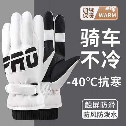 冬季骑行手套户外电动车摩托车触屏防水防风男女加绒加厚滑雪手套