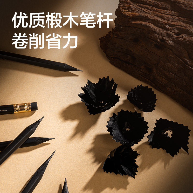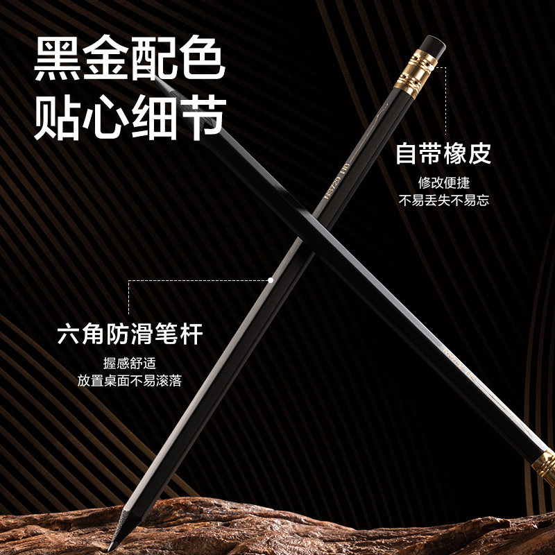 得力纽赛黑金黑木铅笔带橡皮头hb小学生专用一二年级学生2b儿童幼儿园学习文具用品练字考试涂卡笔