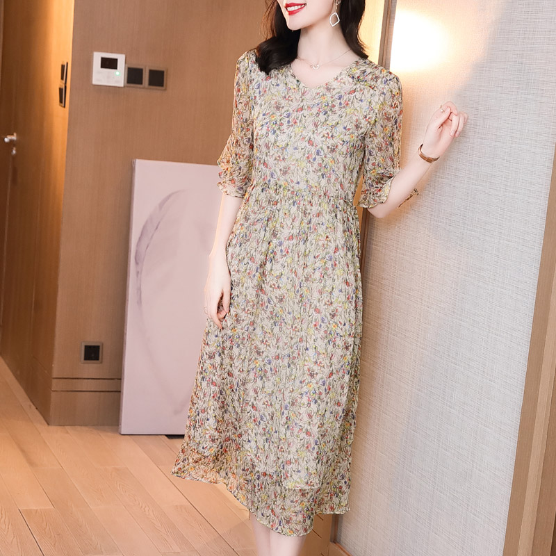 杭州真丝连衣裙女夏季2025新款气质年轻款大牌高端桑蚕丝碎花裙子