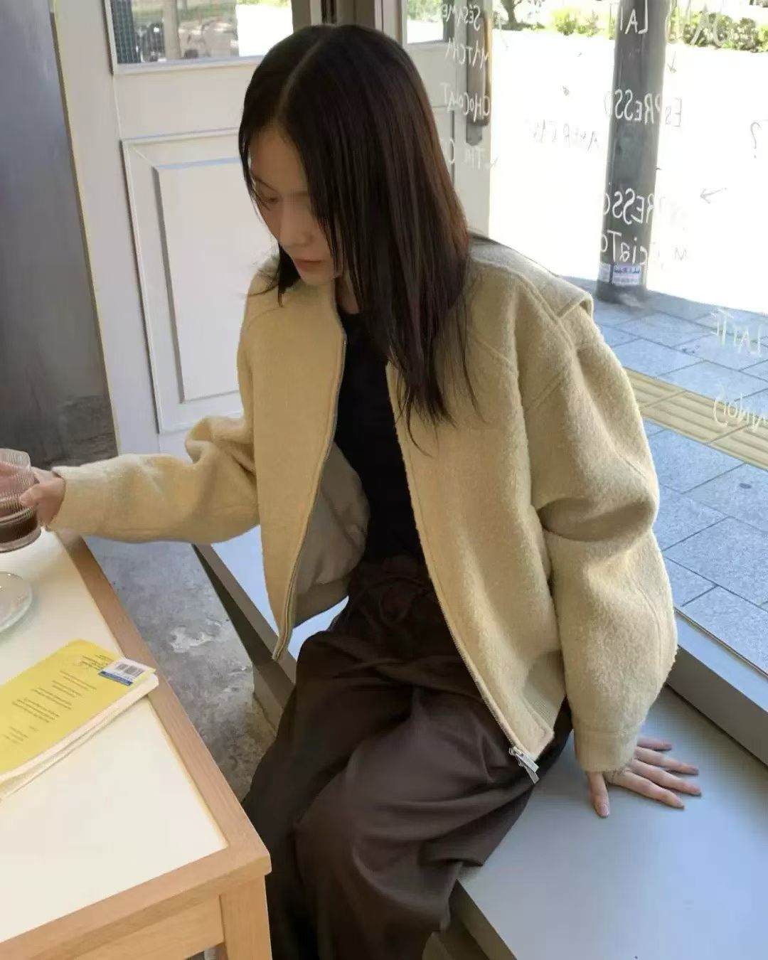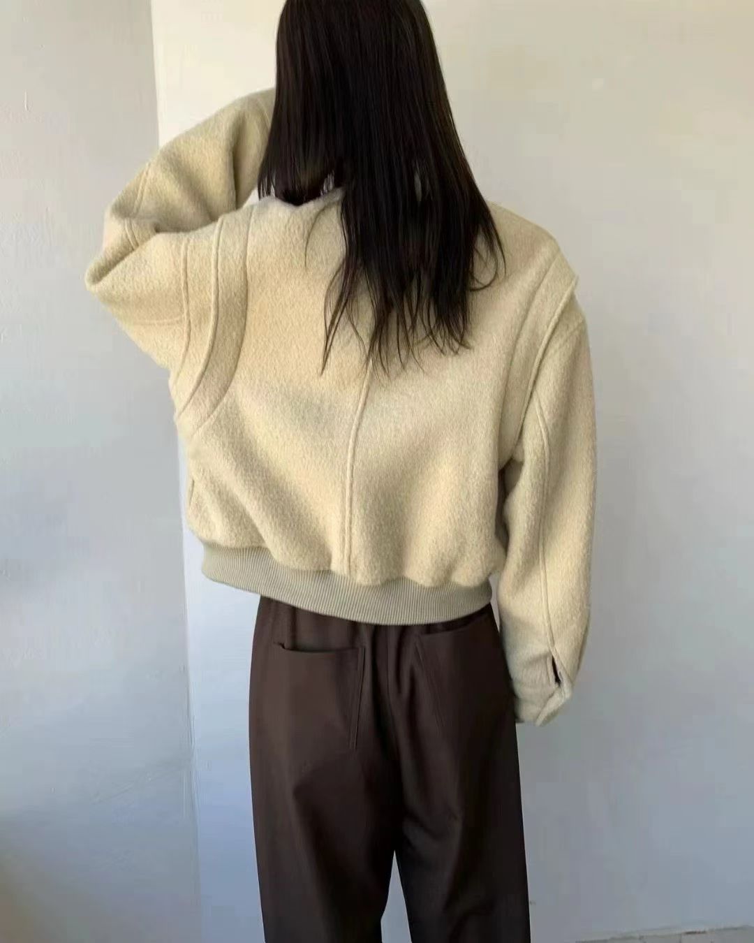 原单 100%羊毛mohhe25秋冬新款百搭简约棒球服外套女气质羊毛外套