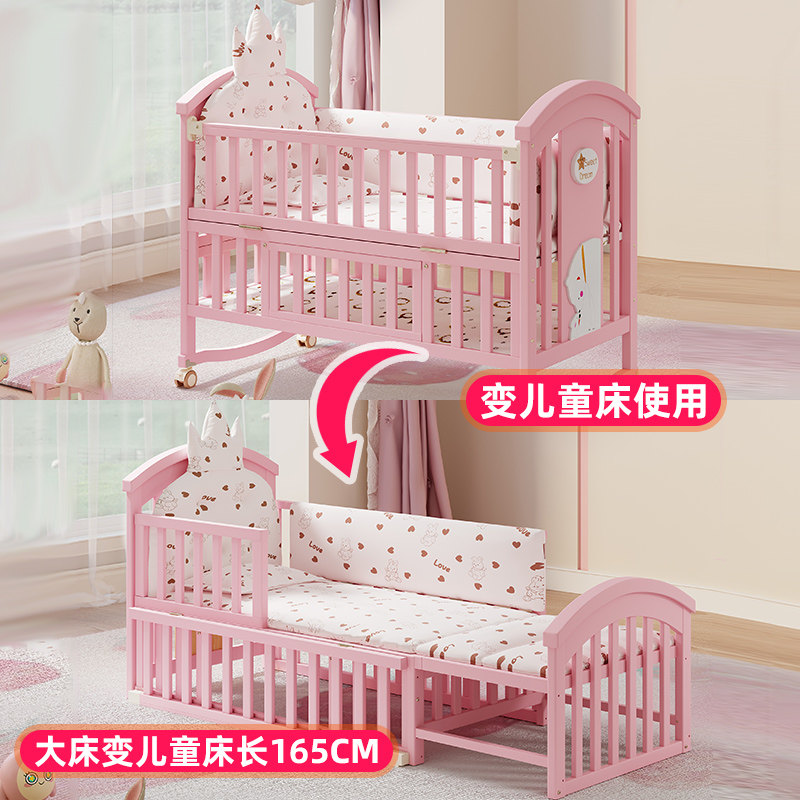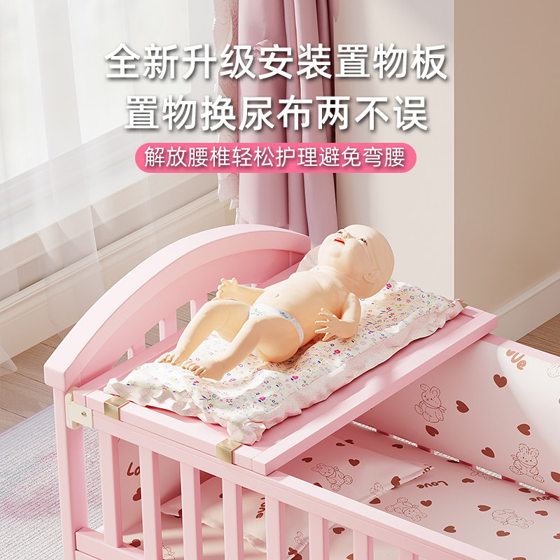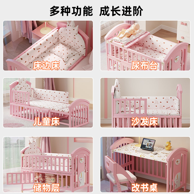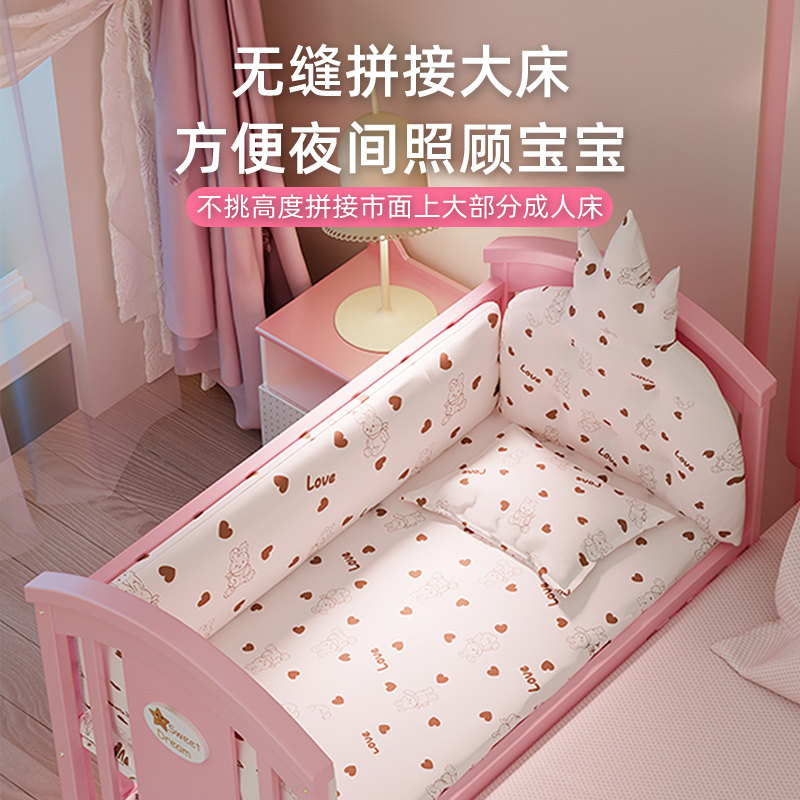 简魅婴儿床实木新生儿bb女孩床多功能宝宝床可移动摇篮床拼接大床