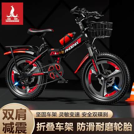 凤凰儿童折叠自行车6-10-12岁男女中大童变速山地车学生脚踏单车