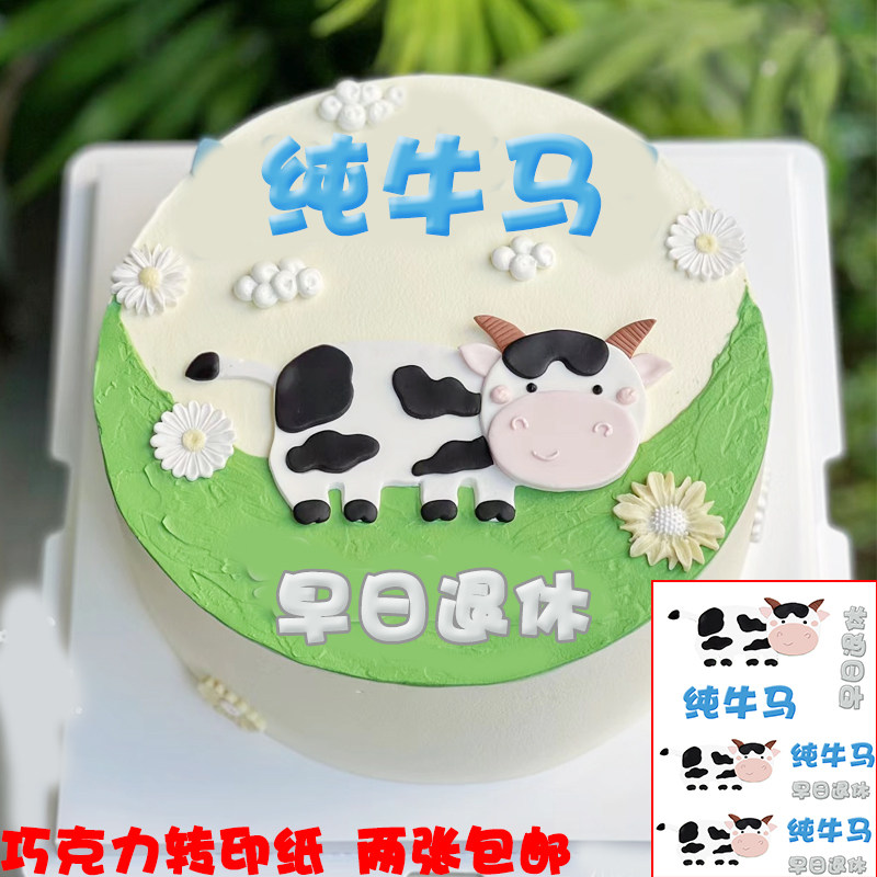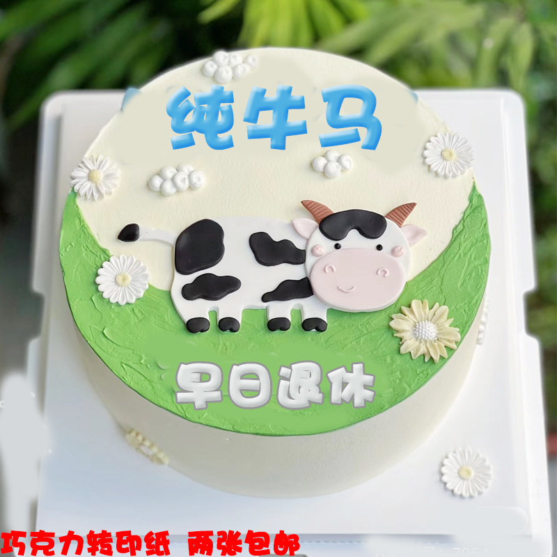 提钱退休巧克力转印纸纯牛马退休生日蛋糕烘焙装饰两张包邮