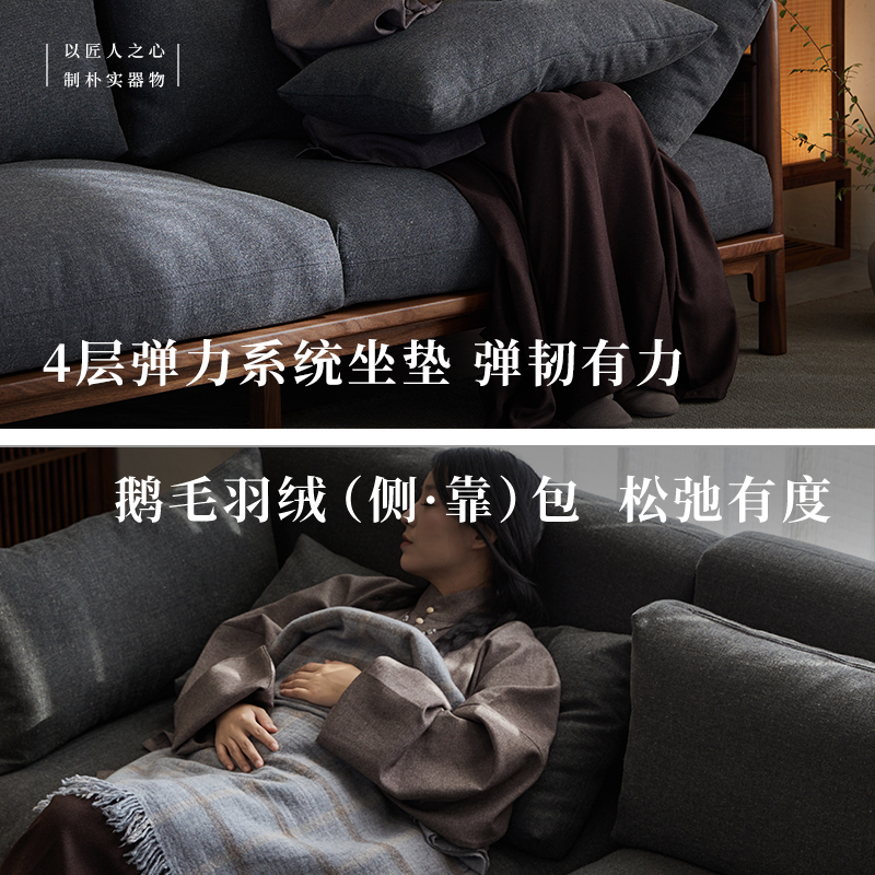 璞木新中式黑胡桃木实木红木沙发组合三人位双人宋式美学家具客厅