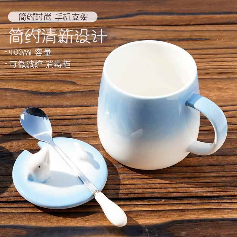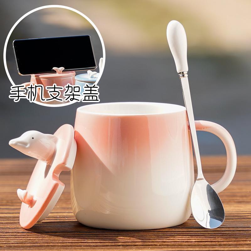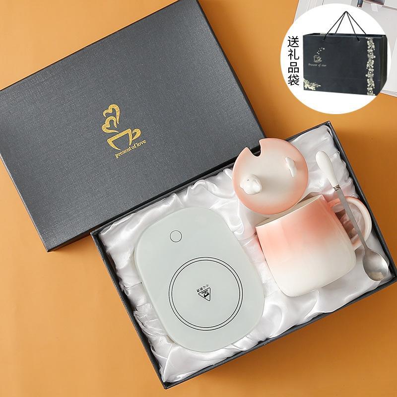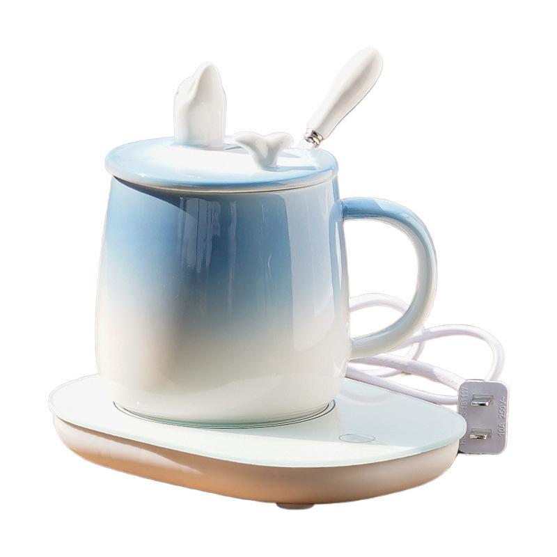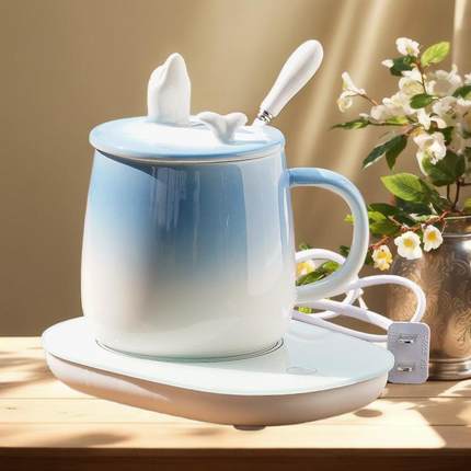 海豚纯色可加热恒温暖暖杯简约ins风杯子女陶瓷马克杯带盖带勺子