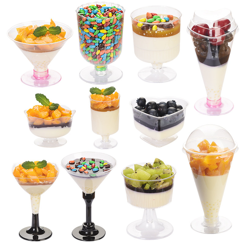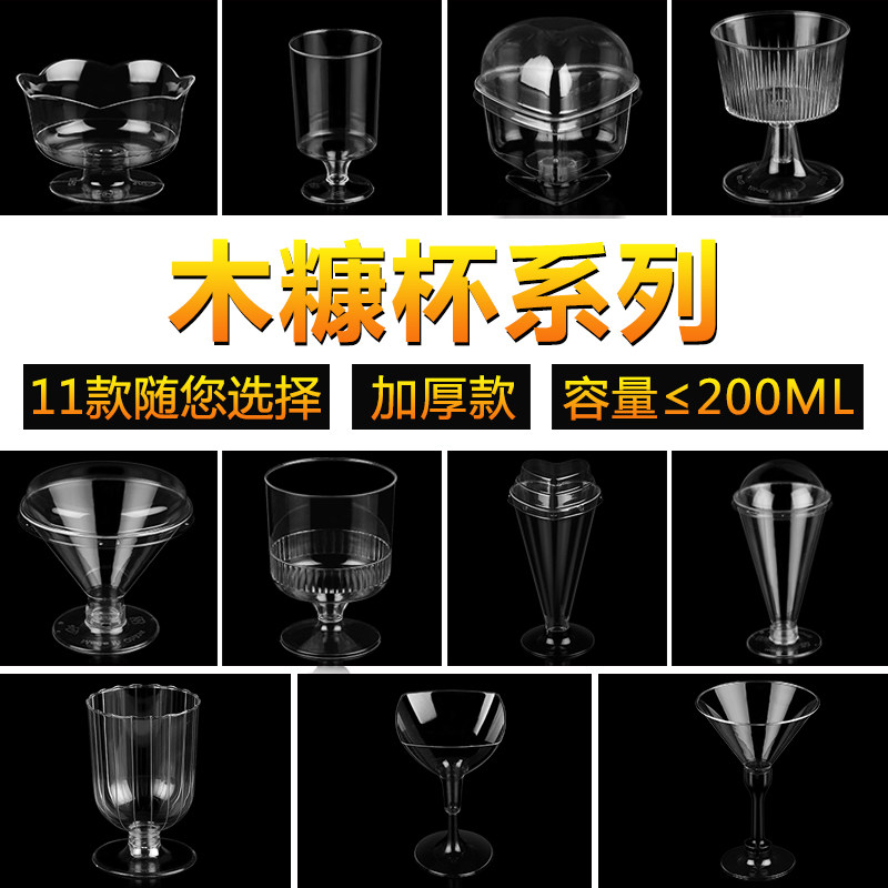 高脚慕斯杯木糠红酒布丁果冻航空硬塑料PS一次性杯子带盖透明包邮