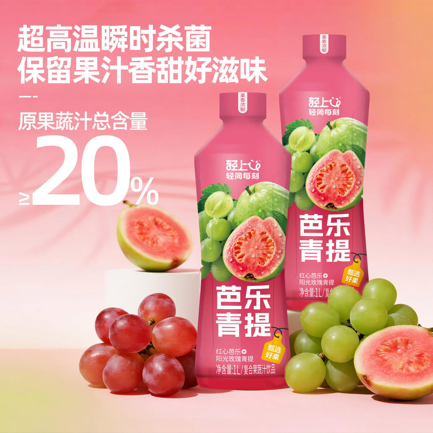 轻上果汁送礼饮品大瓶青提饮料阳光1L芭乐装芭乐红心果汁青提整箱