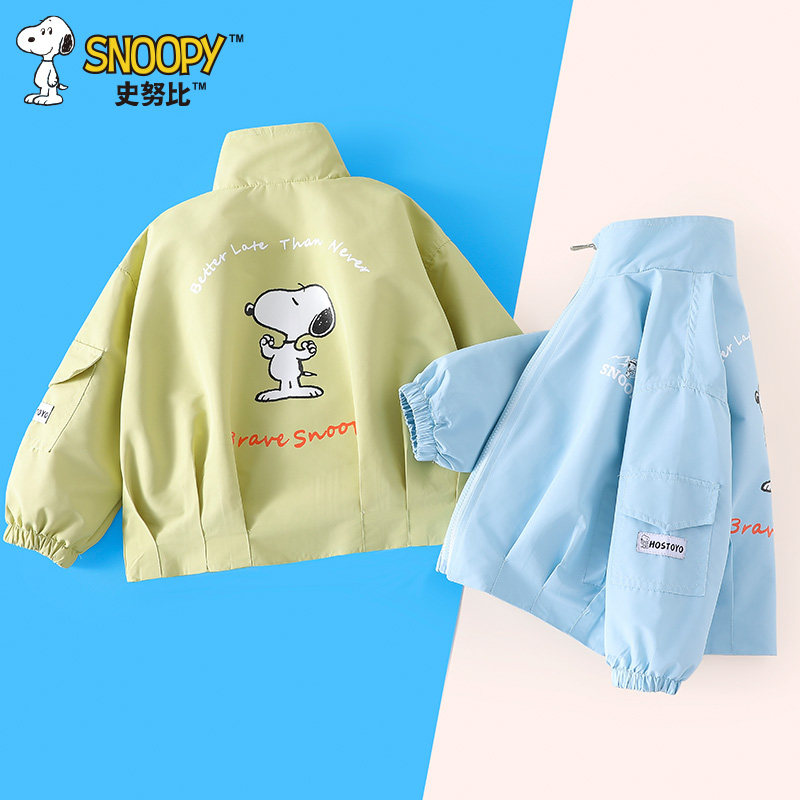 史努比2025春季新款儿童休闲时尚百搭潮酷男童女童立领外套童装