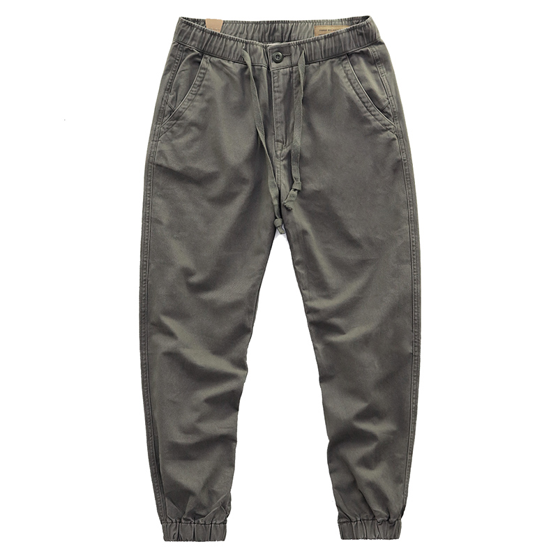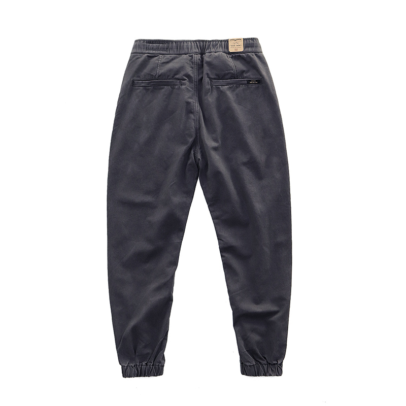 复古工装束脚裤男抽绳纯棉直筒