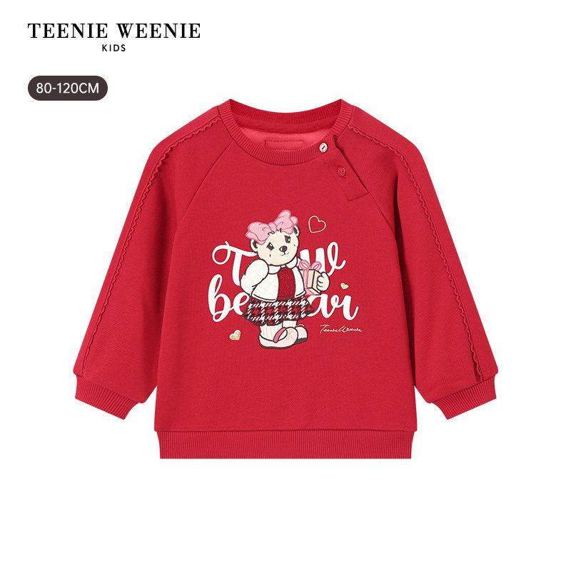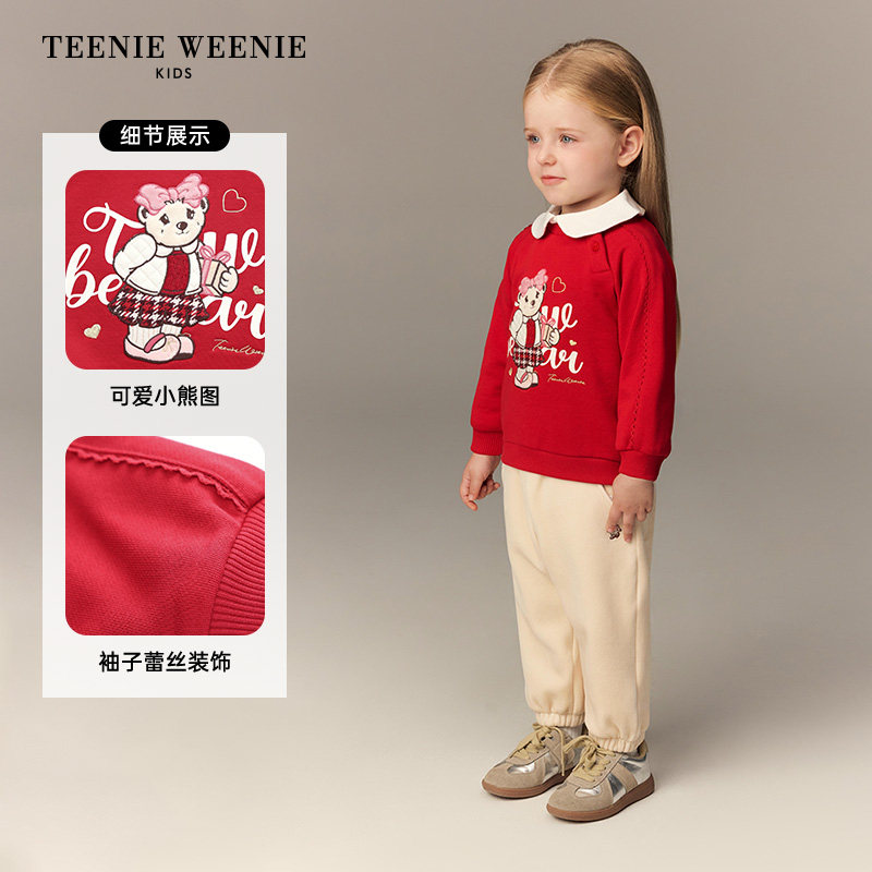 TeenieWeenie Kids小熊童装26新年款女宝宝甜美蕾丝圆领长袖卫衣