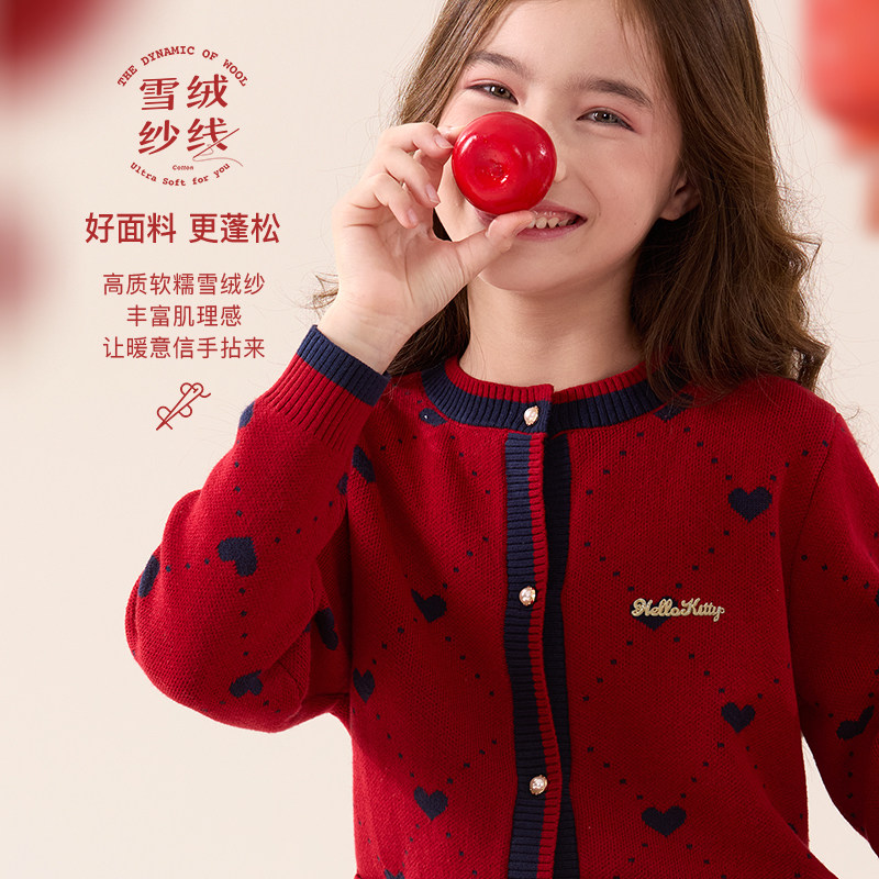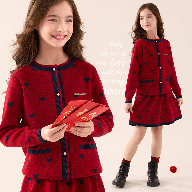 女童套装儿童春秋新款裙子大童秋冬红色纯棉毛衣针织外套裙子童装