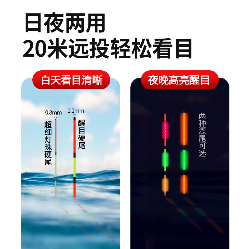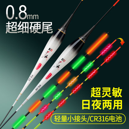 316小电池硬尾夜光漂高灵敏鲫鱼漂LED醒目日夜两用咬钩变色电子漂
