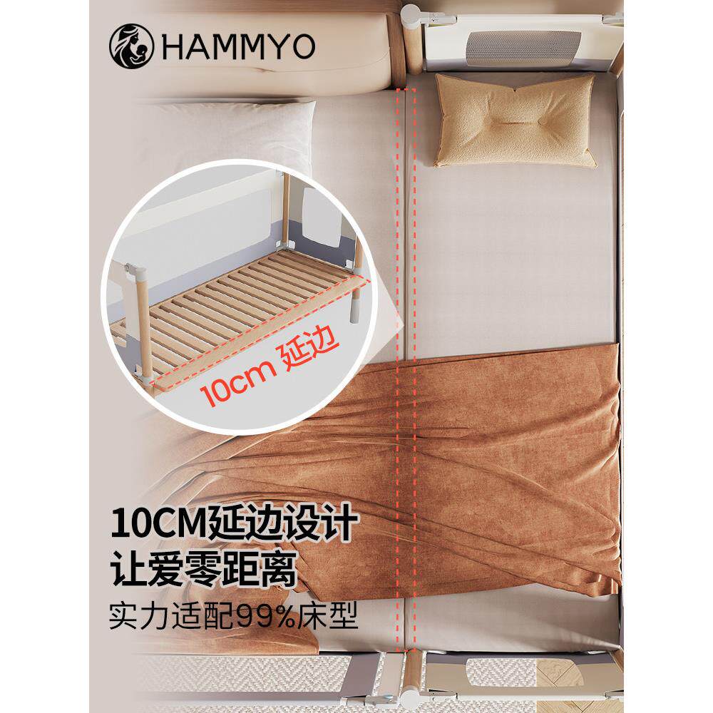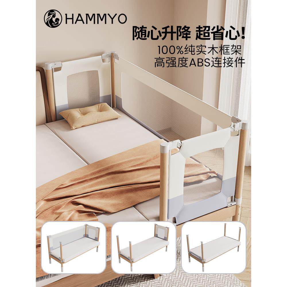 哈妙拼接床婴儿床实木加宽床边平接大床无缝可升降护栏宝宝儿童床