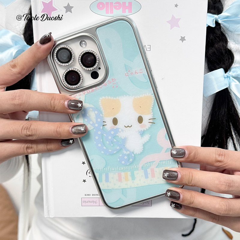 可爱少女古早音乐小猫咪清新棉花糖小猫适用iphone16promax亚克力壳苹果15plus/14手机壳日系复古