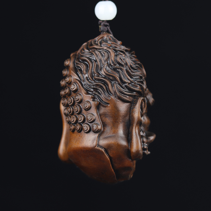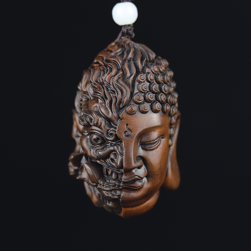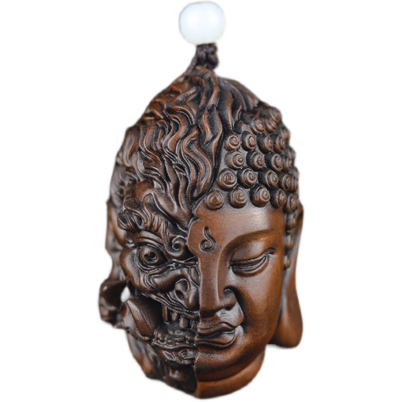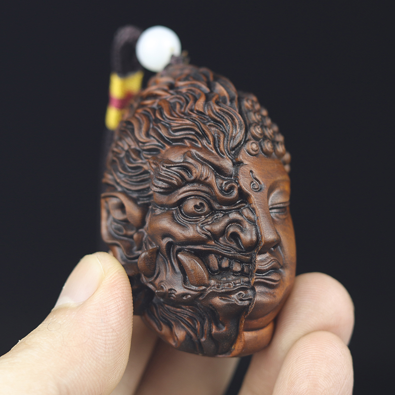 仿古小叶黄杨木雕一念之间吊坠手把件男士随身把玩件佛魔头挂件