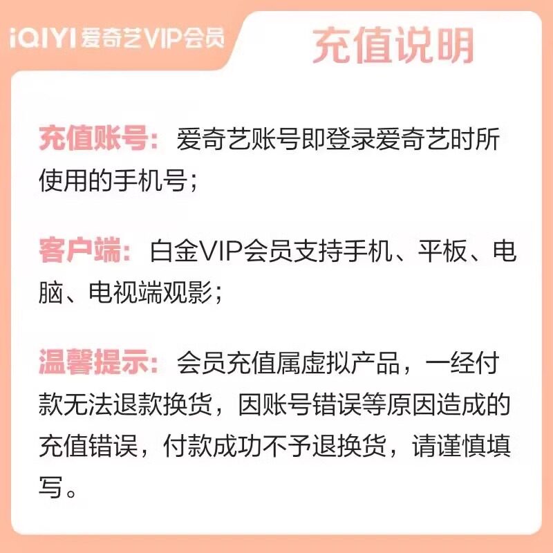 【支持电视】爱奇艺白金会员一个月30天季年卡星钻vip银河奇异果