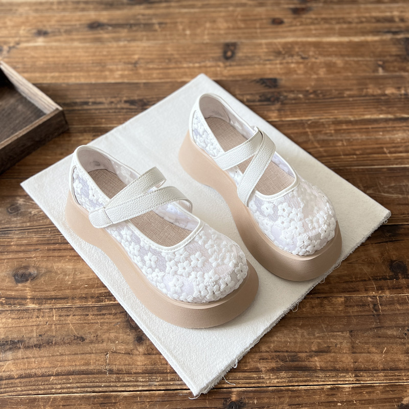 网纱凉鞋夏季玛丽珍鞋女厚底松糕鞋洛丽塔jk大头鞋仙女风透气网鞋
