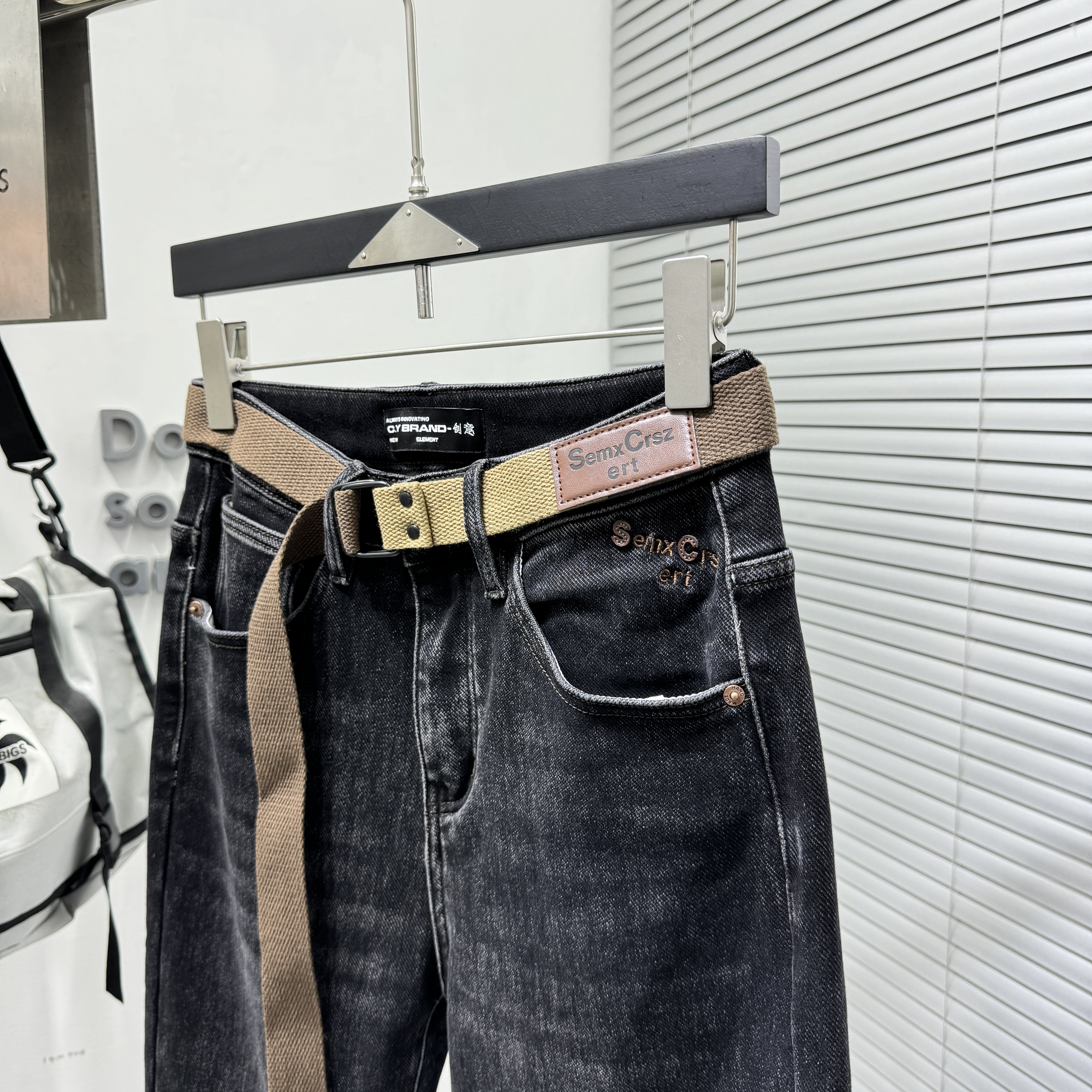 创意秋冬男士复合抓毛牛仔裤刺绣痞帅时尚百搭修身小脚弹力长裤子