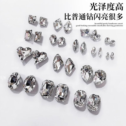 美甲施华洛同款高品质K9尖底白钻银色超闪异形鸽子蛋八角奢华大钻