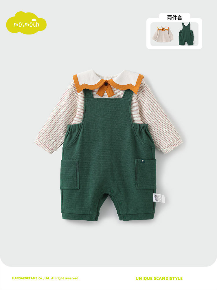 moimoln小云朵童装春季男童洋气套装背带裤T恤两件套潮