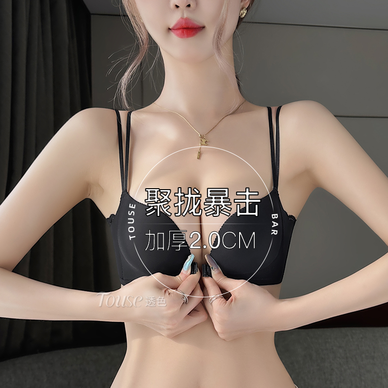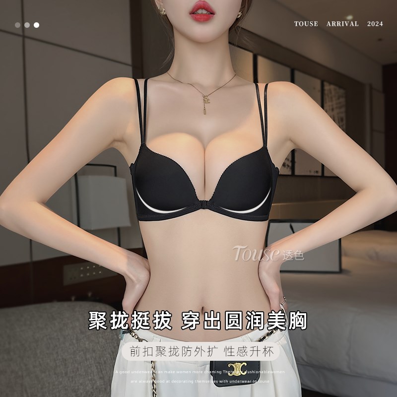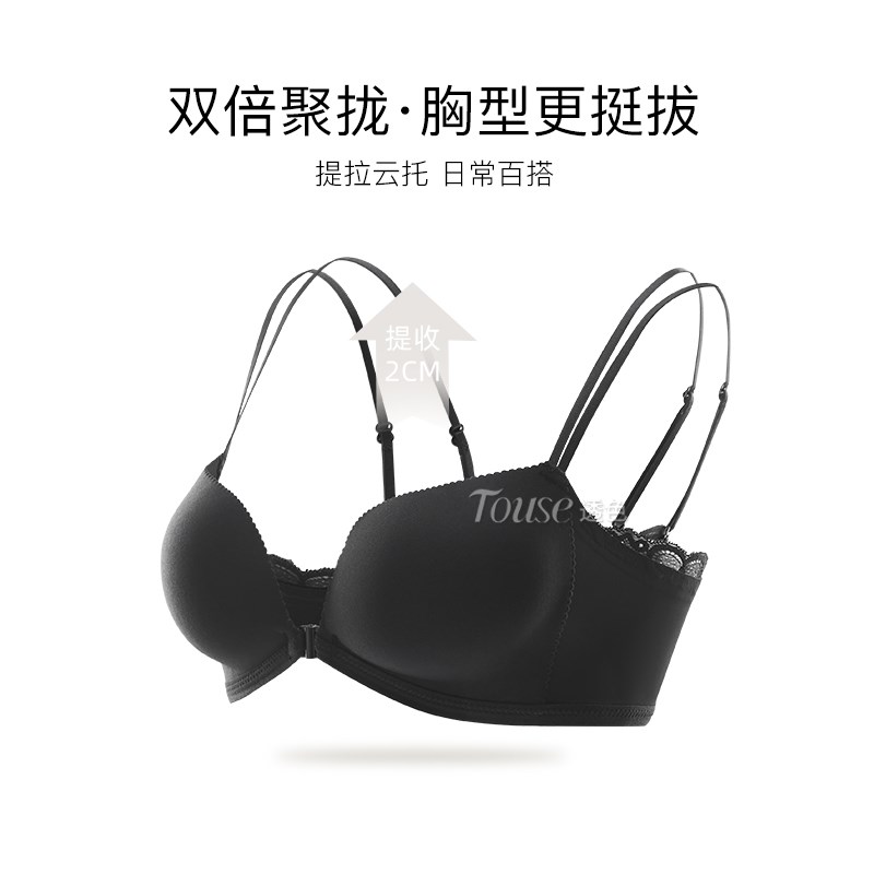 前扣内衣小胸聚拢厚显大收副乳防下垂夏季性感细肩带美背无痕文胸