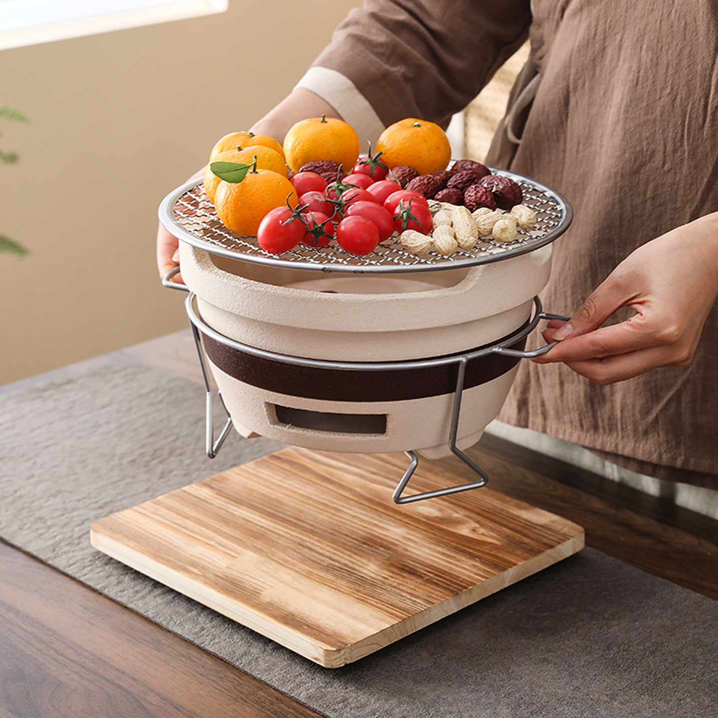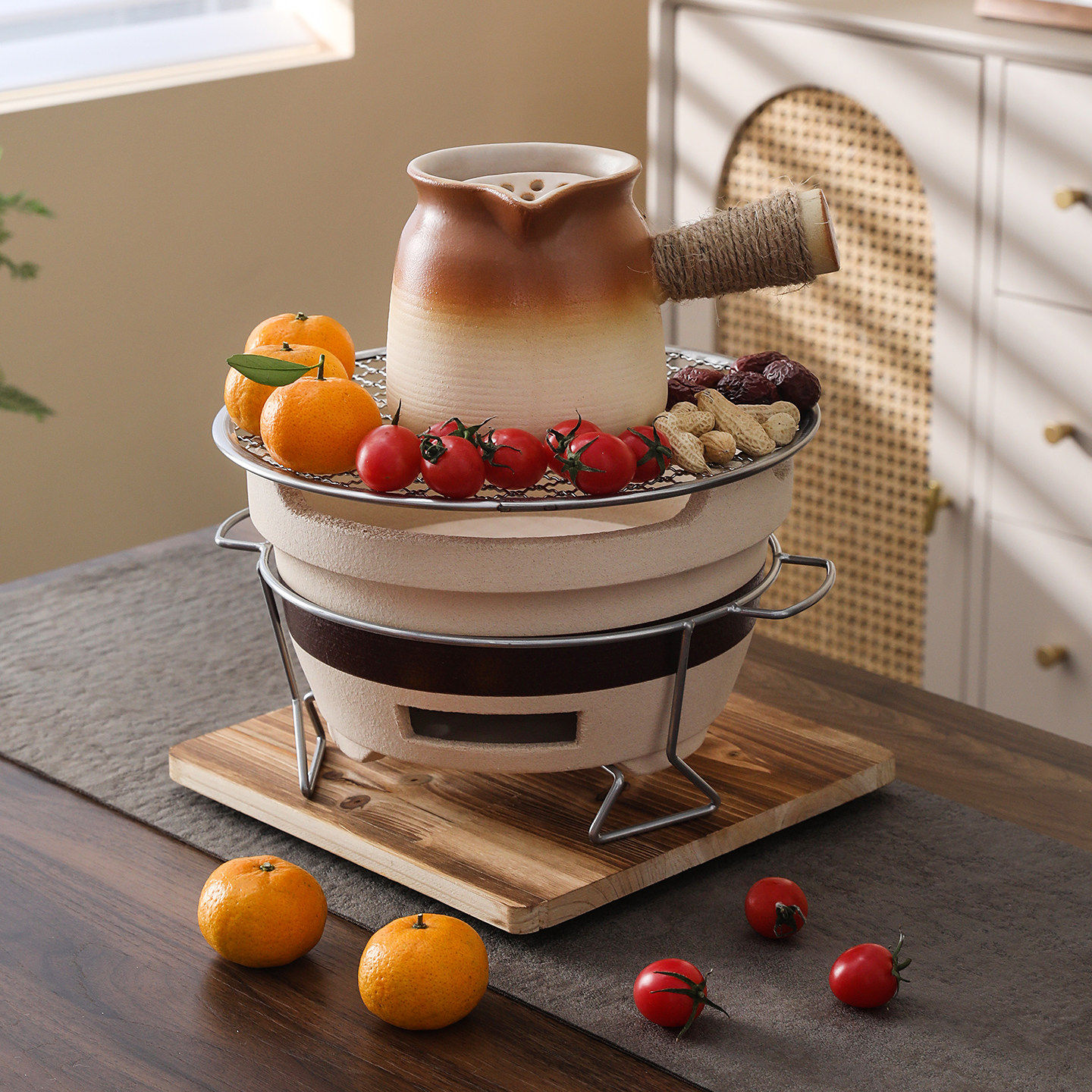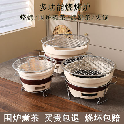 围炉煮茶家用室内老式炭炉家用打边炉泥碳炉户外烧烤陶土烤茶装备