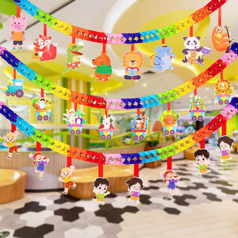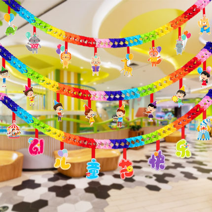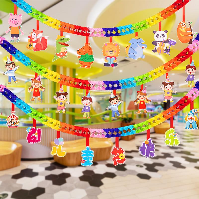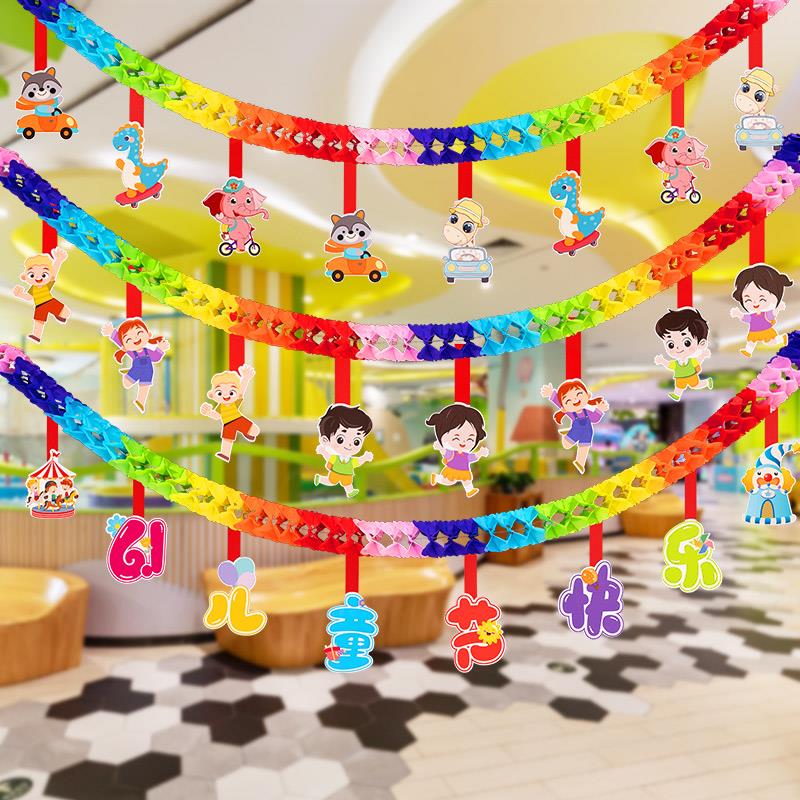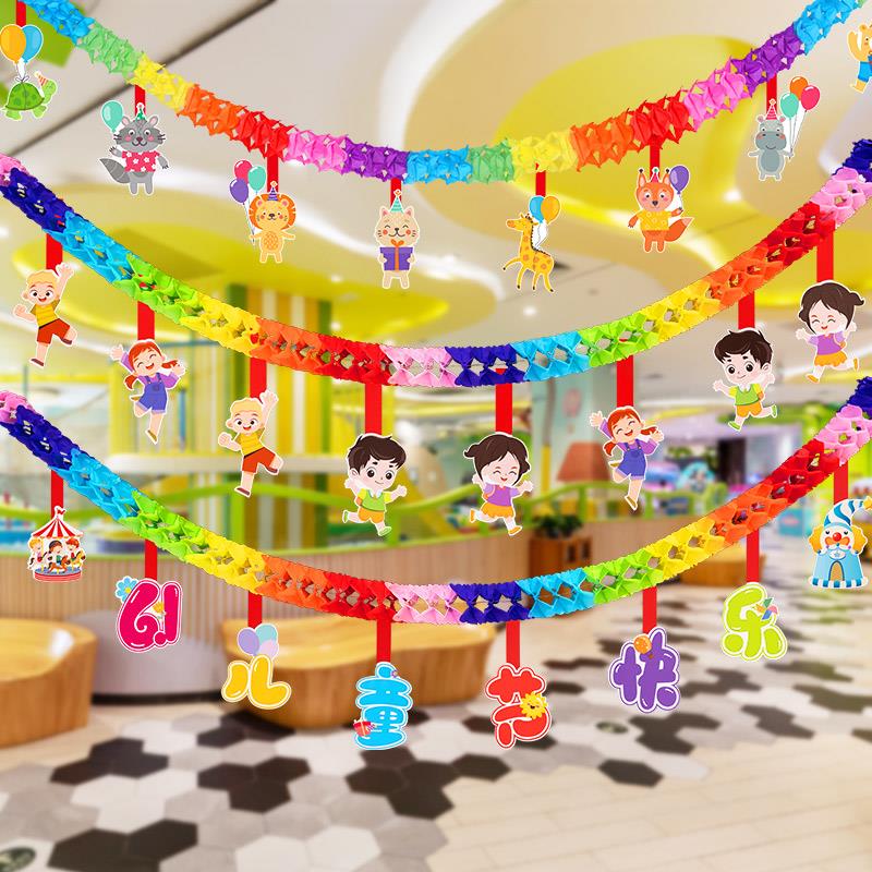 六一儿童节拉花拉旗商场门店装饰吊顶吊饰幼儿园活动氛围布置彩带