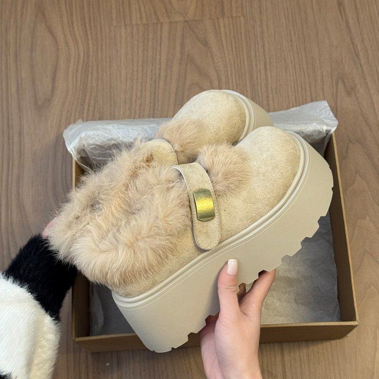冬季保暖厚底增高勃肯一脚蹬鞋女