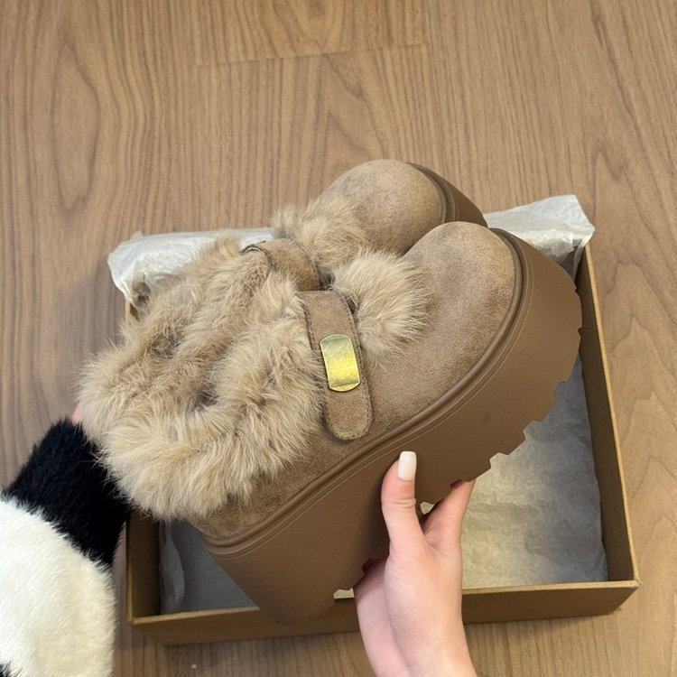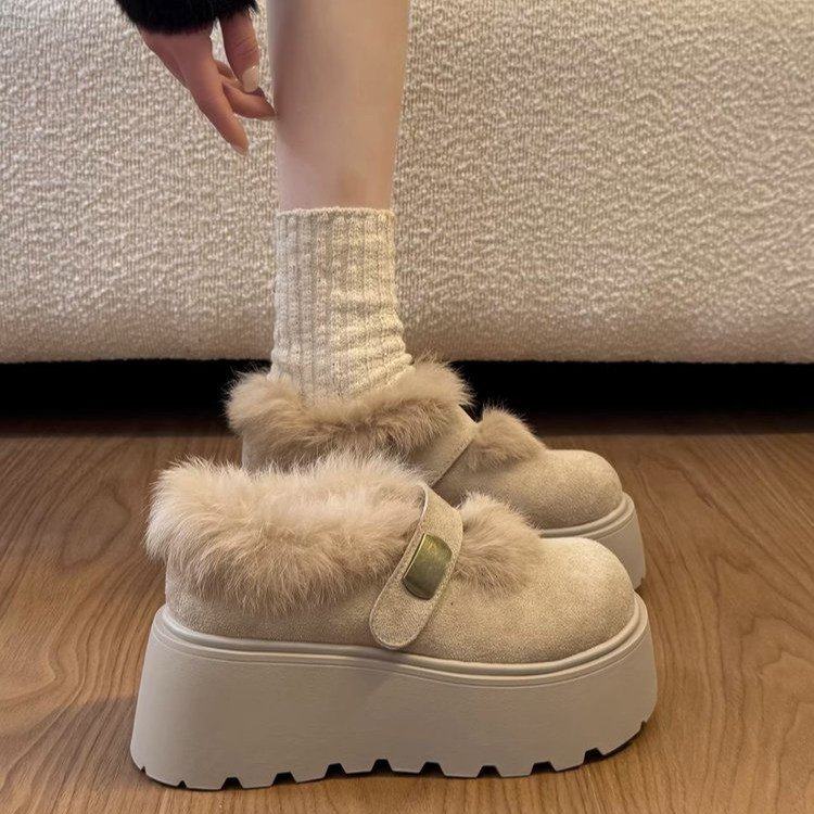 厚底增高毛毛勃肯鞋女2025新款冬季加绒保暖松糕底圆头棉鞋一脚蹬
