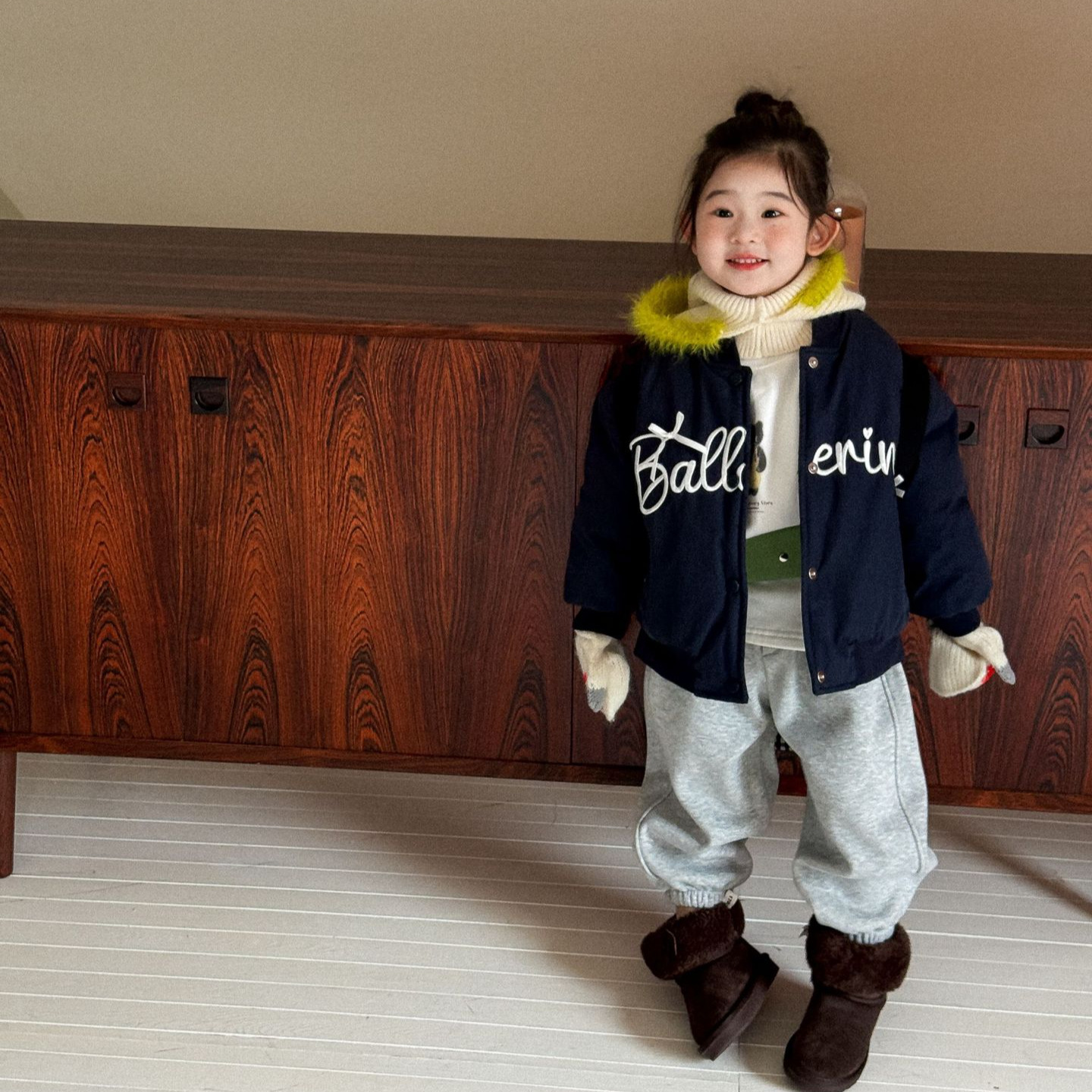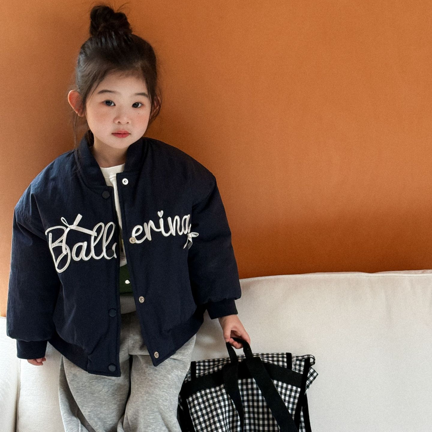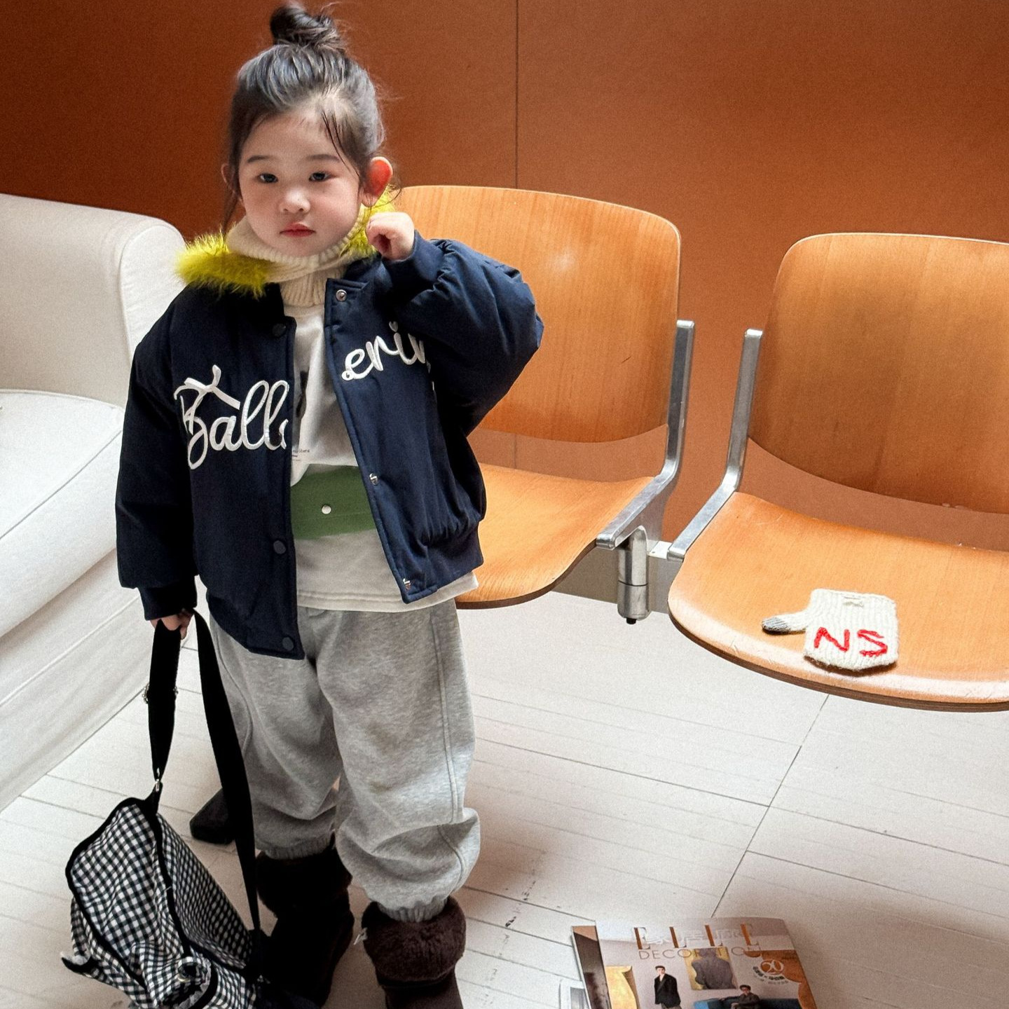 2025冬季新款童装 韩版童装 女童字母刺绣夹棉棒球服 儿童冬外套