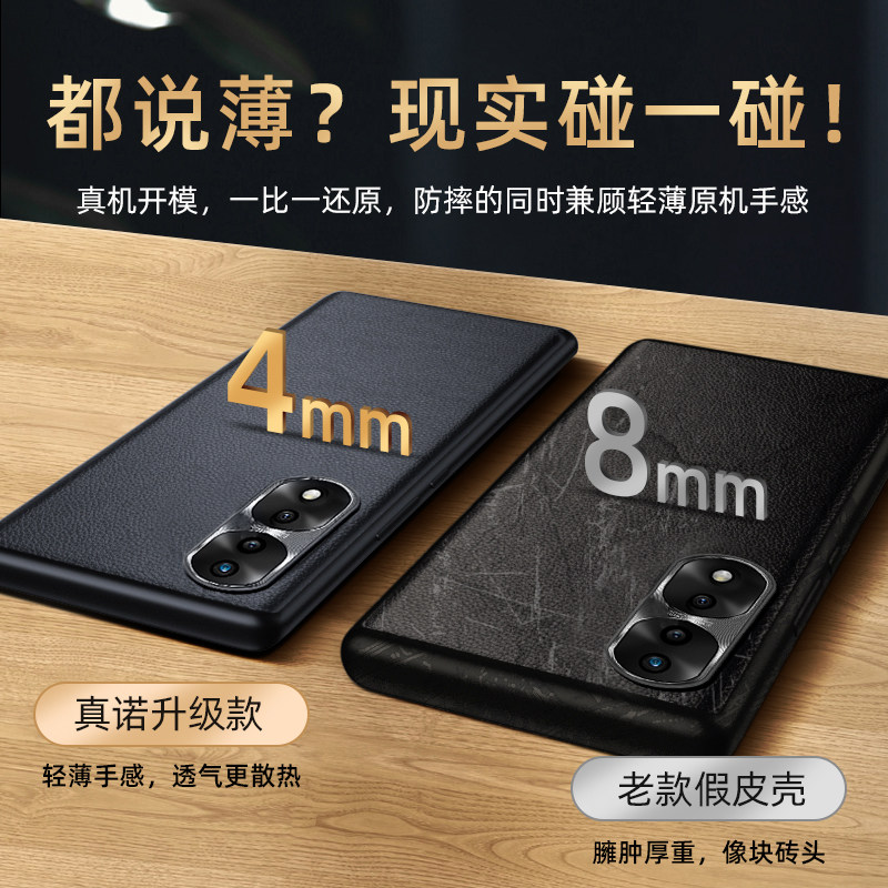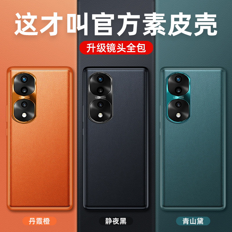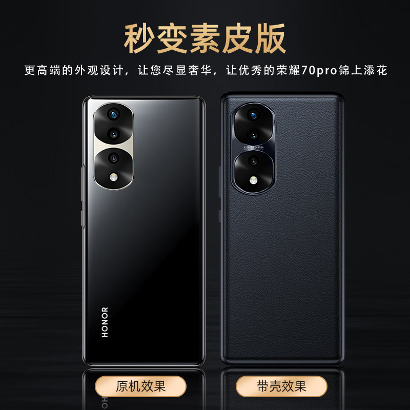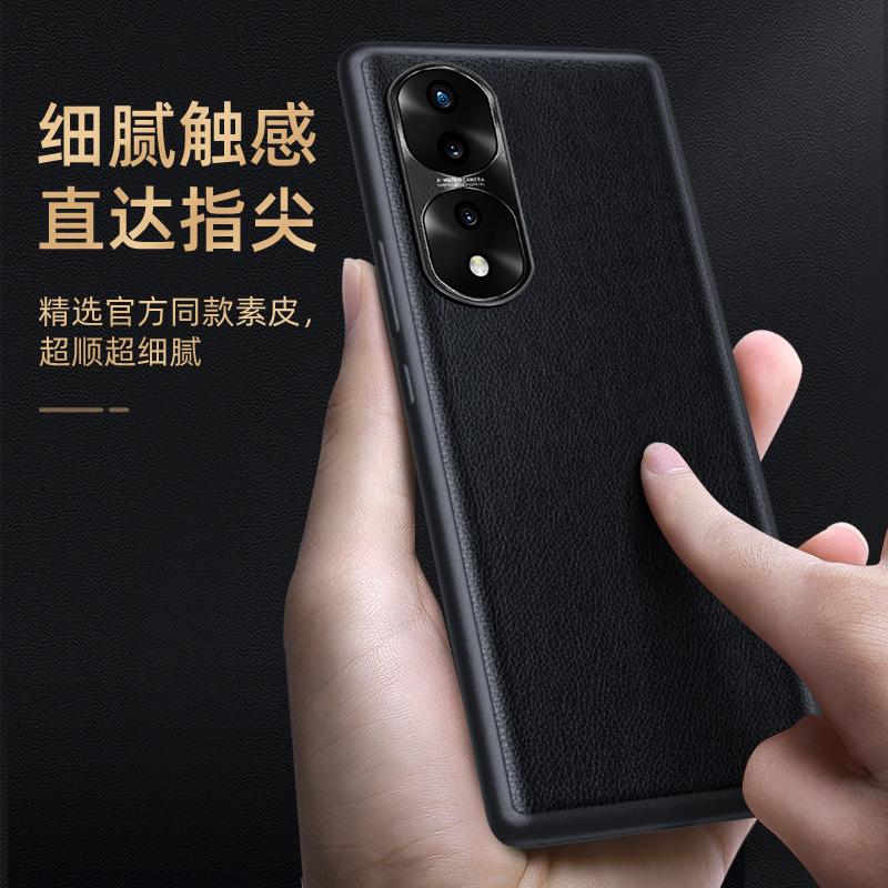 适用荣耀70真素皮手机壳防摔