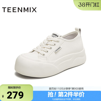 天美意秋新款商场同款系带厚底纯色百搭女小白鞋BL361CM5
