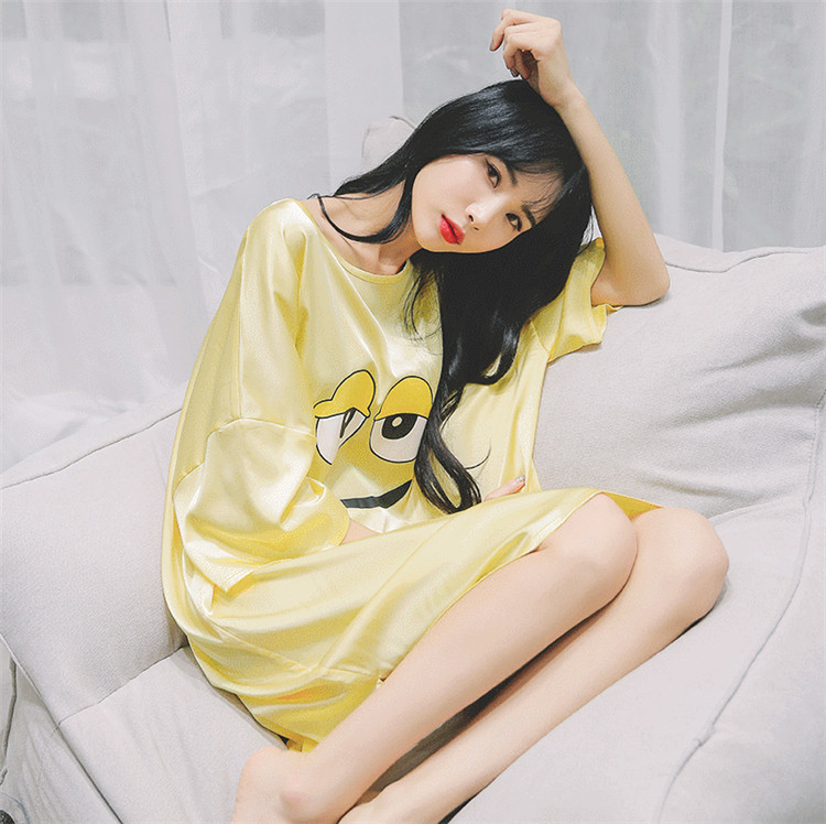 睡衣女夏季雪纺短袖睡裙女夏天可爱薄款韩版孕妇胖mm大码宽松春秋