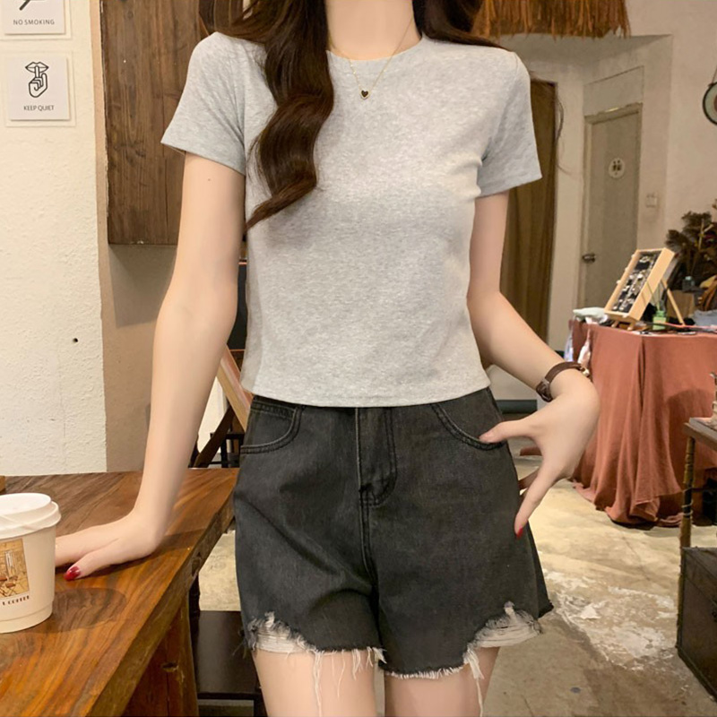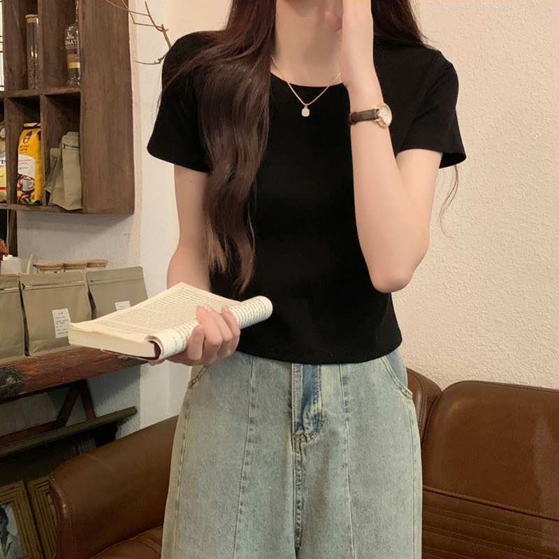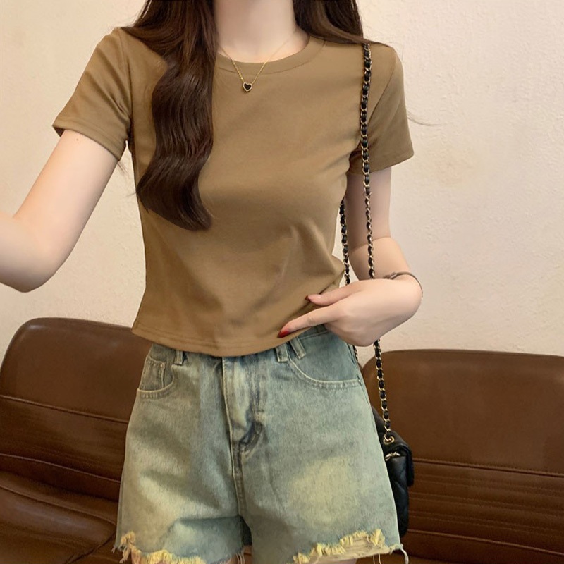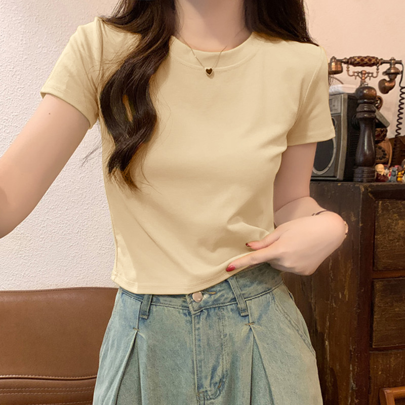 新款正肩t恤短袖女夏季天纯棉打底内搭2025新款修身美式短款上衣