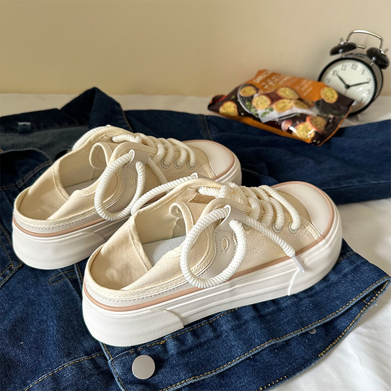 小众奶fufu丑萌大头两穿懒人帆布鞋2025新款厚底小白鞋休闲板鞋子