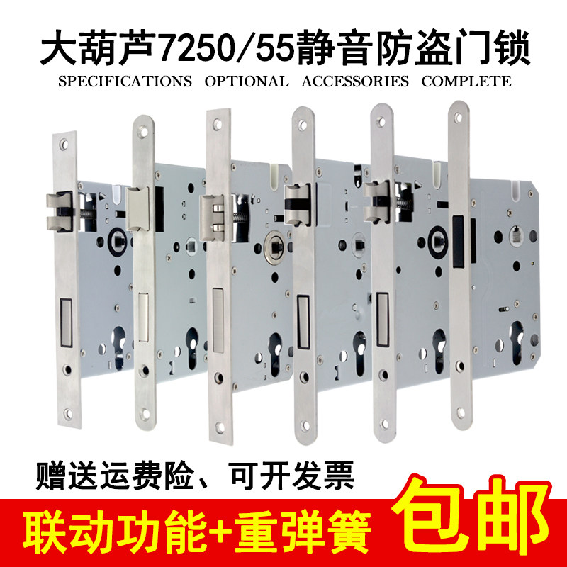 极速7255圆角锁体长235大葫y芦孔重弹簧两件式锁磁吸静音7250防火
